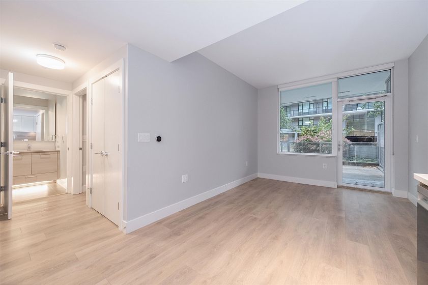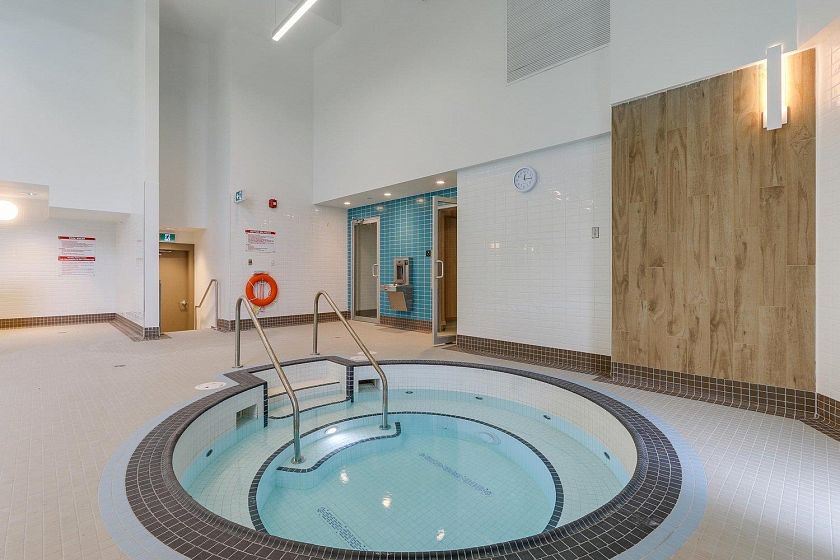 This is the perfect home for a First Time Homebuyer seeking Big Deck Energy! Behold, this 1 Bed, 1 Bath & Den boasts a 386SF PRIVATE PATIO & 2 STORAGE LOCKERS! Total combined indoor/outdoor living space of 986 sqft, outdoor lovers rejoice, your home is here. Ready for you to move in, includes fresh paint, new Dishwasher and new Oven. Creature comforts include Heat Pump cooling to keep you cool in the summer and 14k sqft. Amenities center to keep you entertained all year round. Enjoy the indoor pool, Hot tub, steam room, sauna, gym, squash courts, basketball court and party rooms at Club Central. Good food, grocery and necessities all within steps. This home will only add to your lifestyle!