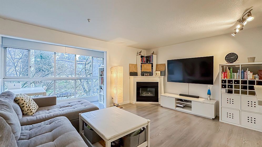 Roof top deck with PANORAMIC WATER & MOUNTAIN VIEWS of the Golden Mile and more! Stylishly renovated 690 sq.ft. 1 bed/1 bath plus open den plus solarium home at the well-maintained, rain-screened Pacific Landing. Thoughtfully laid out with bright, open living area and an entertainer-friendly kitchen featuring quartz countertops, newer appliances, and a generous eating bar. East-facing windows bring in soft morning light and overlook mature trees for a peaceful outlook. The open den offers an ideal work-from-home setup, while the solarium adds flexible living space. Spacious bedroom with walk-in closet and cheater four-piece bath. In-suite laundry and excellent storage complete the home. Enjoy BBQs and breathtaking views from the shared rooftop deck. Open House Sat Jan 31, 2025 | 11am–1pm