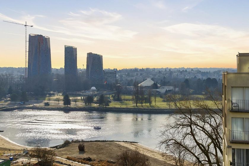 Live your best beachside life just one block from the water in this sought-after ENGLISH BAY location! This bright and spacious 1 bed, 8th floor, CORNER SUITE offers spectacular south and west-facing WATER VIEWS. Enjoy breathtaking sunsets from the large windows in every principal room, and your private balcony! This well run concrete building has many updates incl: windows, doors, exterior membrane, paint, swimming pool and garage membrane. Includes 1 pkg stall, 1 locker, bike lockers and visitors pkg. Rentals allowed and a prepaid lease until 2073!. Fees incl heat/HW/prop taxes. Rarely do homes with panoramic water views like this come available at such an accessible price. Stroll the seawall to nearby shops, cafes and restaurants, everything at your doorstep.