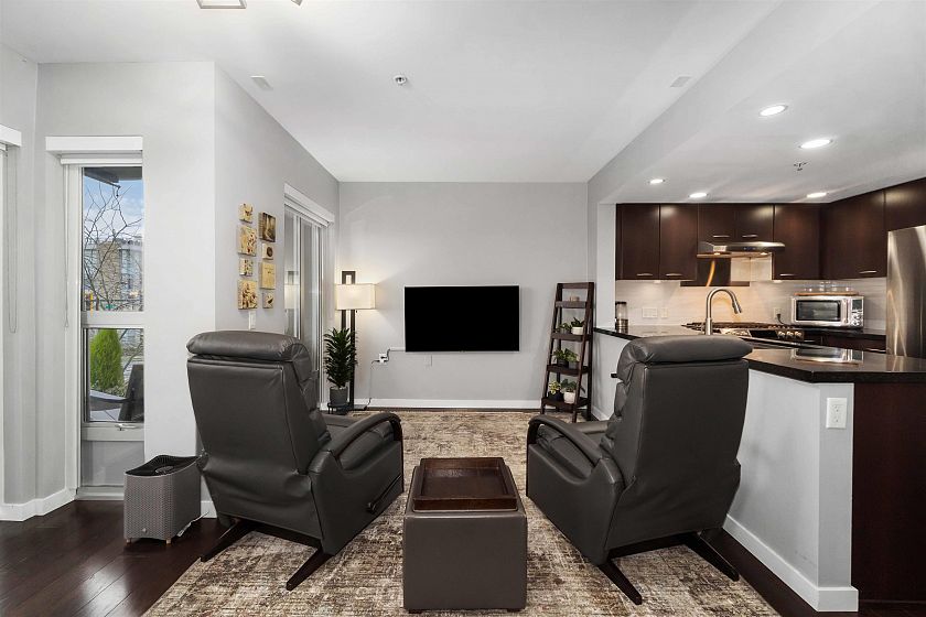 Here's a real gem! A super cool one-bedroom that makes a perfect starter or pied-à-terre. Air conditioned, concrete construction, in-suite laundry, granite countertops, stainless steel appliances, and a gas range. Take in city and harbour vistas, glowing sunsets, and the North Shore mountains. Step outside to a covered balcony with gas hookup—an ideal bonus living space. A good functional plan with no wasted space. Just one block away from the amenities of Central Lonsdale and minutes to all things Lower Lonsdale, including the Seabus. One parking stall, ample storage, pet-friendly, wheelchair accessible, proactive strata & healthy CRF. Comfortable, central, and cool—even on those sticky summer days. Pets OK w/ some restrictions. open Sun. 2-4 or by appt.