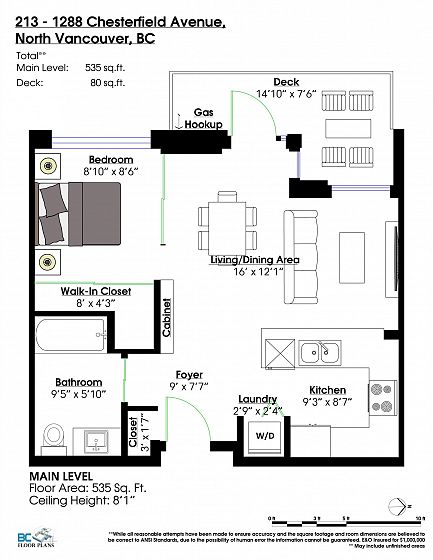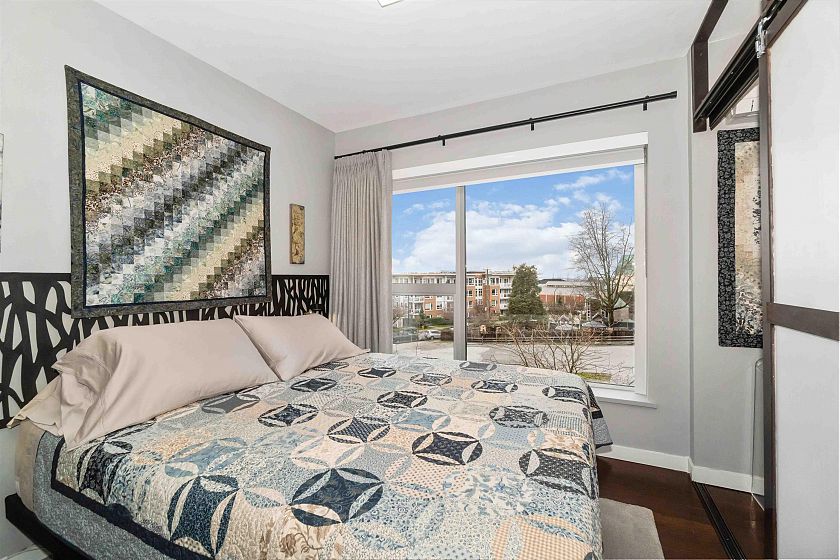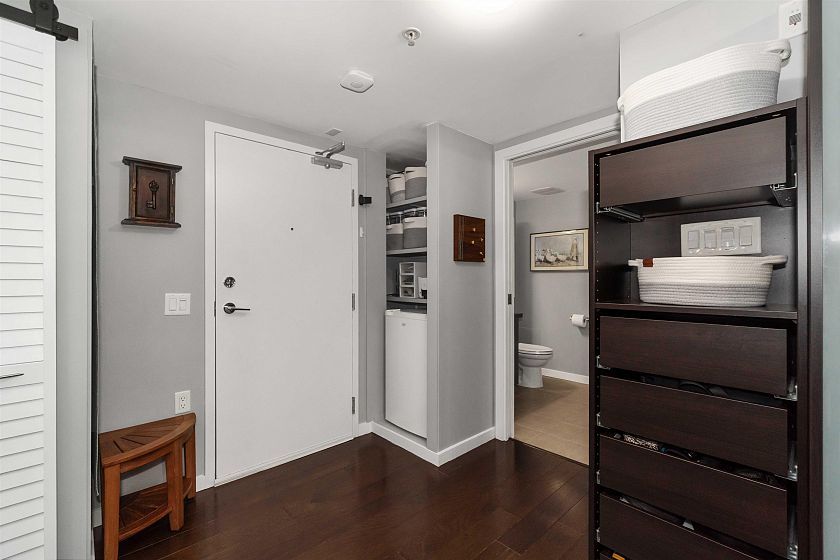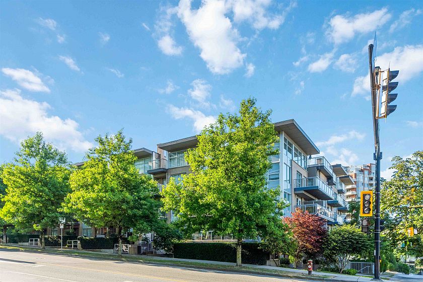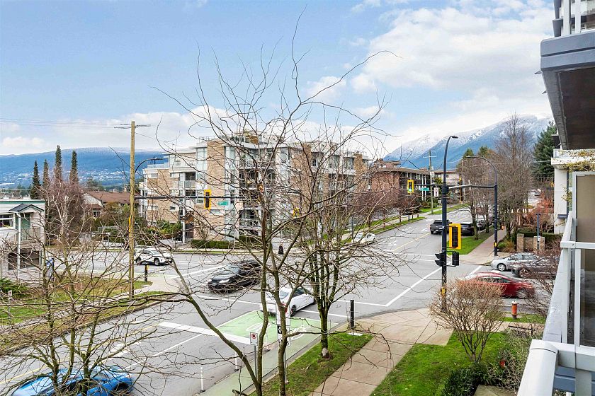 Here's a real gem! A super cool one-bedroom that makes a perfect starter or pied-à-terre. Air conditioned, concrete construction, in-suite laundry, granite countertops, stainless steel appliances, and a gas range. Take in city and harbour vistas, glowing sunsets, and the North Shore mountains. Step outside to a covered balcony with gas hookup—an ideal bonus living space. A good functional plan with no wasted space. Just one block away from the amenities of Central Lonsdale and minutes to all things Lower Lonsdale, including the Seabus. One parking stall, ample storage, pet-friendly, wheelchair accessible, proactive strata & healthy CRF. Comfortable, central, and cool—even on those sticky summer days. Pets OK w/ some restrictions.