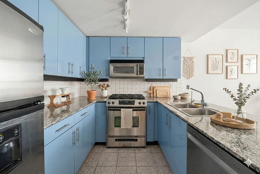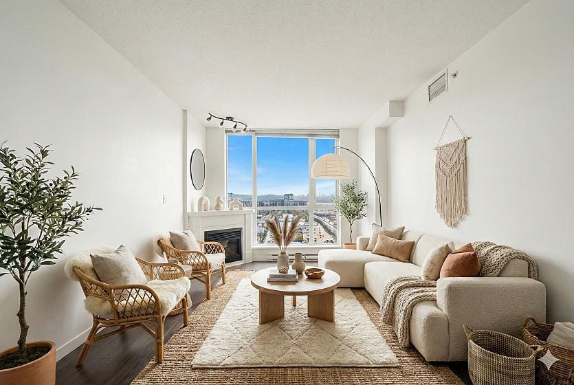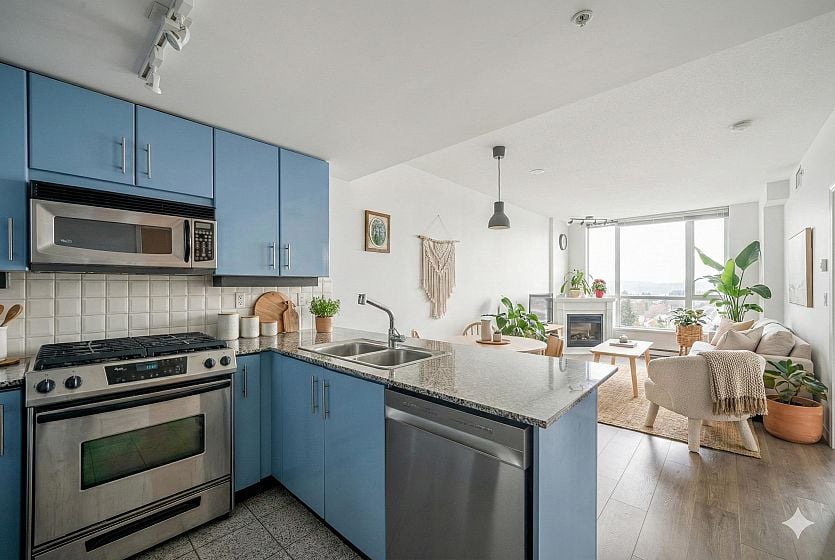 LOCATION LOCATION LOCATION. Perched on the 21st floor, this refined 1 bed & Den unveils panoramic vistas of the North Shore mountains and glistening ocean. The intelligently designed layout features an elegant, open-concept kitchen that transitions effortlessly into expansive dining and lounging areas, while the secluded primary suite provides a serene retreat. Premium comforts include a gas cooktop, full AIR CONDITIONING, and an inviting balcony perfectly suited for sunrise coffees or golden-hour unwinding. AC, heat, and gas are all incorporated into the maintenance fee. Residents enjoy an array of hotel-inspired amenities, including an indoor swimming pool, state-of-the-art fitness centre, hot tub, and more. Tenanted above market value at $2650/month. Contact listing agent for details