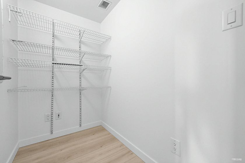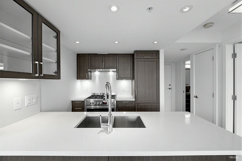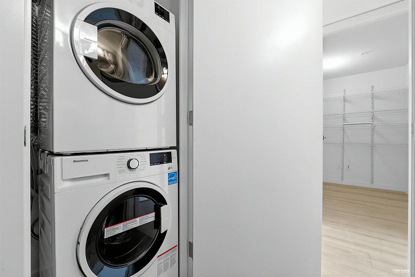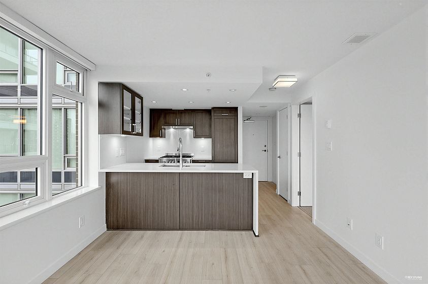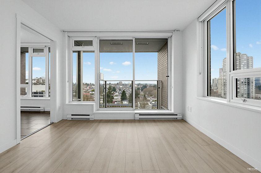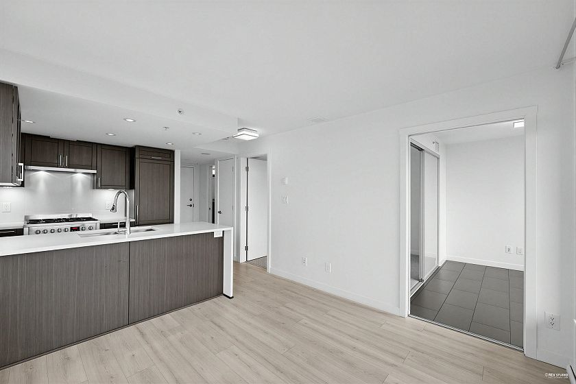 Wall Center T1, 519 sf 1 bedroom plus den corner unit. Laminated floor. Trendy kitchen cabinetry. Open concept kitchen with beautiful quartz countertops for a sophisticated look. Large windows in all rooms for increased natural light. Overseeing roof top garden on the balcony. Only floor connected to Tower 2 for accessing to the swimming pool amenity. Walking distance to daily necessity shopping on Kingsway, Center Park, skytrain station.