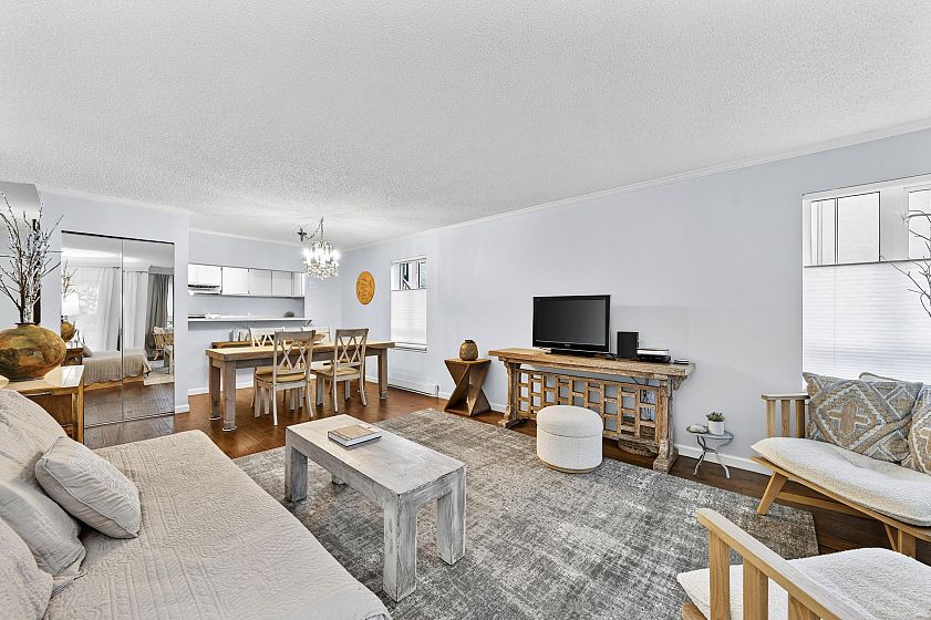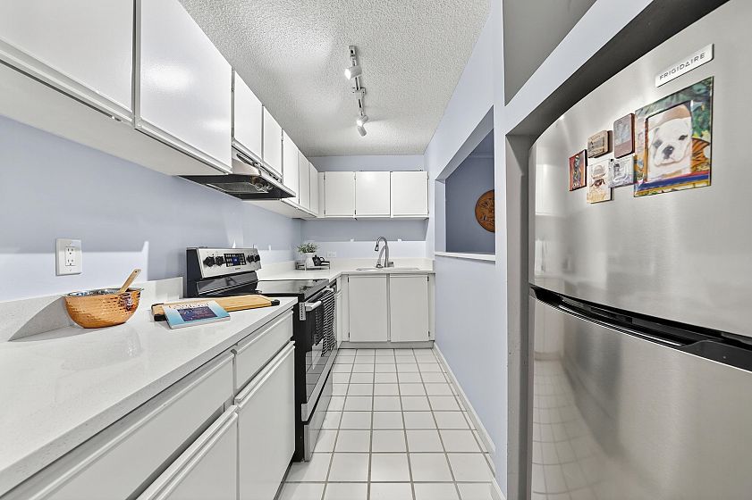 Welcome to this bright & inviting 1-bed, 1-bath ground-floor condo in a pro-active & well maintained building. This spacious home features an open-concept layout with beautiful hardwood flooring in the dining & living areas, complemented by a spacious bedroom with luxurious walk in closet with custom cabinetry. The galley-style kitchen boasts white cabinetry, updated appliances, & ample counter space. Enjoy your covered patio area overlooking a peaceful garden setting—perfect for outdoor relaxation. The building has many upgrades including new exterior envelope including windows, doors, and patios; new plumbing, & new parkade membrane. Located in desirable Fairview neighborhood, this home offers the perfect blend of comfort, style, and indoor-outdoor living. Open House Sun Feb 15 2-4PM