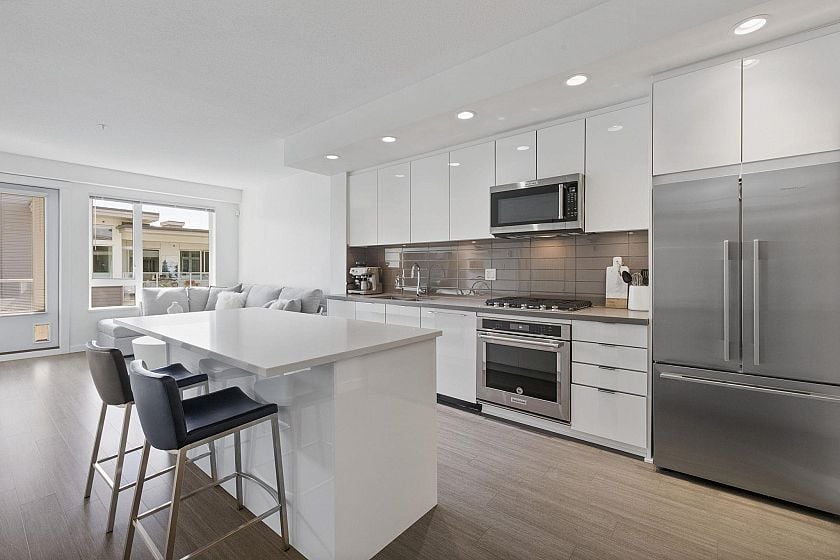 Step into contemporary elegance in this exquisitely crafted 1 bedroom & 1 bathroom penthouse unit at West Quay in the heart of Lower Lonsdale. The open concept living/dining area merges seamlessly with your chef inspired kitchen which features stainless steel appliances, gas range, quartz countertops, and a spacious island. Your primary bedroom is spacious with a large walk in closet and the spa-inspired bathroom offers a place to unwind, reset, and let the city fade away. The large balcony showcases sweeping water and city skyline views which is the perfect place to spend your summer days. Just steps to the Quay, SeaBus, waterfront strolls, cafes, restaurants, markets, grocery stores and more. Includes secure parking + storage. Pets & rentals welcome.