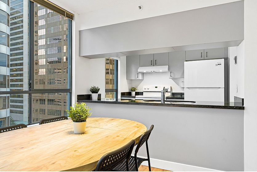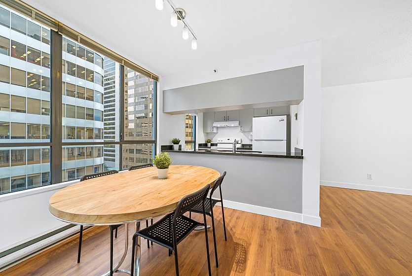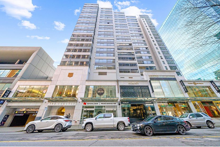 Welcome to The Carlyle - An exceptional residence located at the heart of downtown Vancouver’s 'Rodeo Drive' neighborhood. Steps from premier shopping, renowned dining, and vibrant city life!! This 1 bed corner unit has expansive windows with city views from every room, and features laminate flooring, a covered balcony, new kitchen appliances, updated lighting, & comes freshly painted! Enjoy an unmatched lifestyle, walking distance to the Seawall, Coal Harbour, SkyTrain, Robson St, Stanley Park, waterfront paths, and so much more. Well-managed building with caretaker. Amenities include: full lap indoor pool, hot tub, steam room, sauna, gym, meeting room, and newly updated outdoor courtyard. Includes 1 parking stall. See link for video tour.. *Viewings by appointment only.