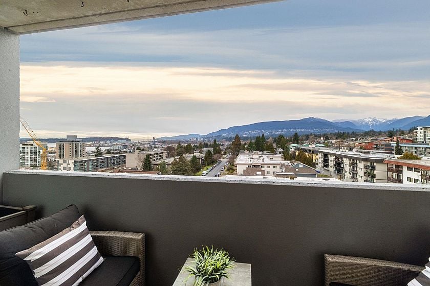 Spectacular southwest PANORAMIC VIEWS of the OCEAN, city skyline, Lions Gate Bridge & the Lions define this LUXURIOUSLY RENOVATED corner residence in a solid concrete building, in the heart of Lower Lonsdale. Thoughtfully updated, it features a new kitchen, custom cabinetry updated bathroom, luxury vinyl plank floors, new baseboards, smooth ceilings, quartz countertops, & new pot lighting. Bright, generously proportioned living & dining areas easily accommodate full-size furnishings, while principal rooms showcase the stunning views. The well-managed building offers amenities including a gym, lounge, tennis court, landscaped courtyard & secure bike storage. Just steps to Lonsdale Quay, Shipyards, SeaBus, dining, breweries & all conveniences. Elevated urban living in the heart of Lolo.