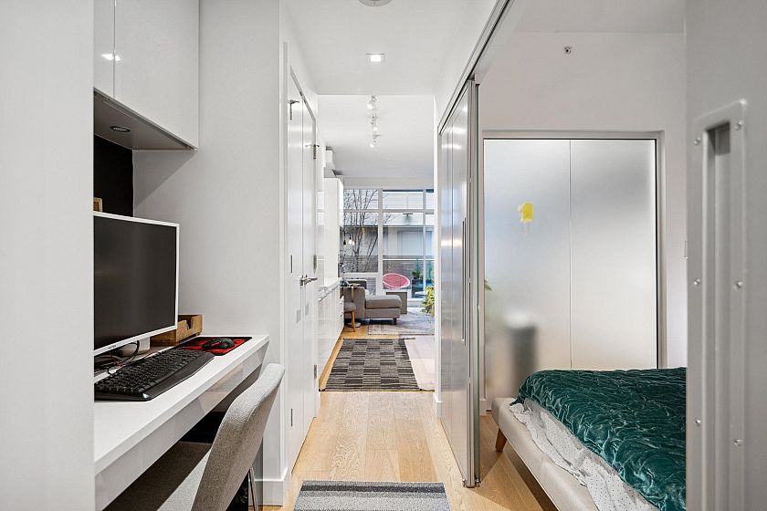 Welcome to this bright and airy unit at Meccanica by Cressey with over-height ceilings, large windows, and engineered hardwood throughout. This unit is also equipped with a signature high-end Cressey kitchen featuring European appliances, a well-designed layout and cabinetry. This location is unbeatable, steps to the seawall, Olympic Village, restaurants, shopping and transit. 1 parking space and 1 locker included.