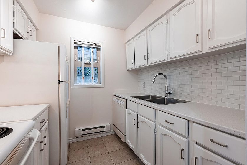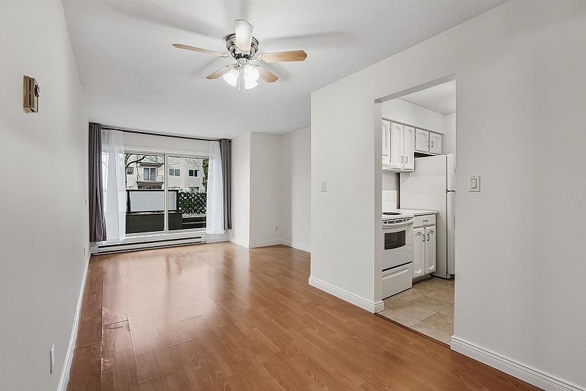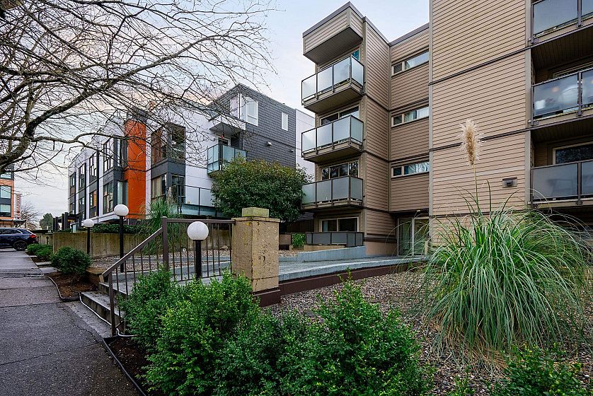 PRIVATE GARDEN PATIO in this CORNER home at Landview Place! BRIGHT & SPACIOUS 1 bed, 527 sqft w/ laminate flooring, open living & dining, efficient layout & zero common walls. NEWLY UPDATED kitchen w/ new countertop, S/S sink, subway tile backsplash & painted cabinets. Generous bedroom w/ good closet space. SPA-LIKE 4pc bath w/ DEEP soaker tub. Freshly painted throughout (incl. ceilings). Your own outdoor space perfect for entertaining. WORRY-FREE building fully rainscreened w/ updated cement fiber siding, windows & balconies. Unbeatable Commercial Drive location, steps to Bosa Foods & the best shops, cafes & restaurants of The Drive. 3 blocks to Templeton Pool. Rentals OK. Parking & storage. Perfect starter home or investment property! Exceptional value. Hurry! OPEN HOUSE FEB 15TH 2-4 PM