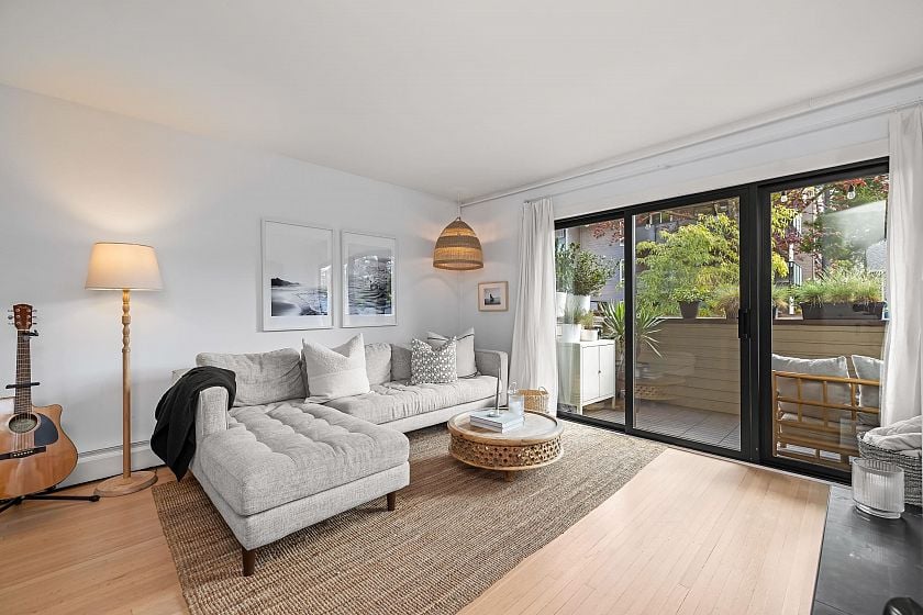 Enjoy this beautifully renovated 1 bed + den, 1 bath condo just steps from Kits Beach. The fully updated kitchen and bathroom set the tone for modern living, while hardwood floors throughout add warmth and style. The versatile den is ideal as a home office, extra storage or nursery, and the bright east-facing living and dining area welcomes morning light and flows to a sunny outdoor space perfect for summer barbecues. One parking stall, your own storage locker and in-suite laundry complete this turnkey home, backed by a proactive, pet-friendly strata. On one of Vancouver’s most charming streets; only a five-minute stroll to the beach and a 12-minute walk to downtown. Open Sat Feb 28 1-3