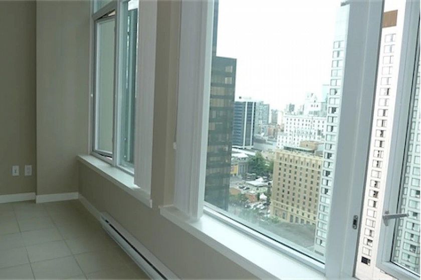 Welcome to The Hudson, a well-known concrete high-rise in the heart of Downtown Vancouver. This exceptionally spacious 1 bdrm+den residence offers approx 758 sq ft of thoughtfully designed living space, ideal for professionals seeking comfort, functionality, and a central location. The suite features a bright, open-concept layout with a dining area that comfortably fits a full-size table for six - a rare offering for a downtown one-bedroom. Upgraded with laminate flooring and stainless steel appliances, the home combines modern style with practicality. A den/solarium provides flexible space for a home office or live/work setup, and the bedroom features a walk-through closet leading to the bathroom. One of the most unique advantages is direct elevator access to the Skytrain.
