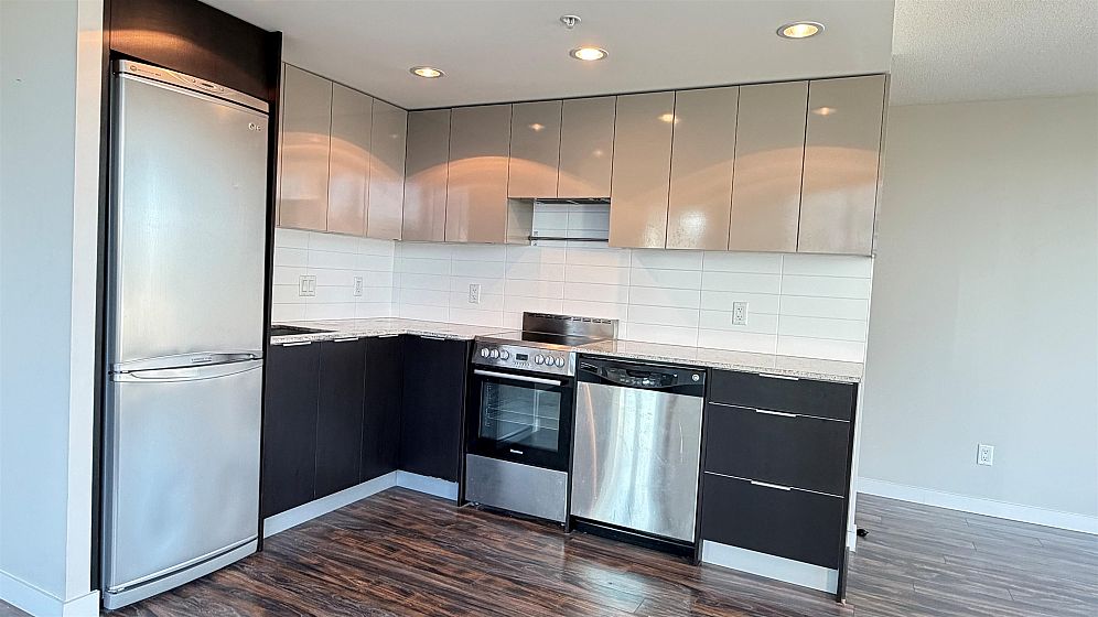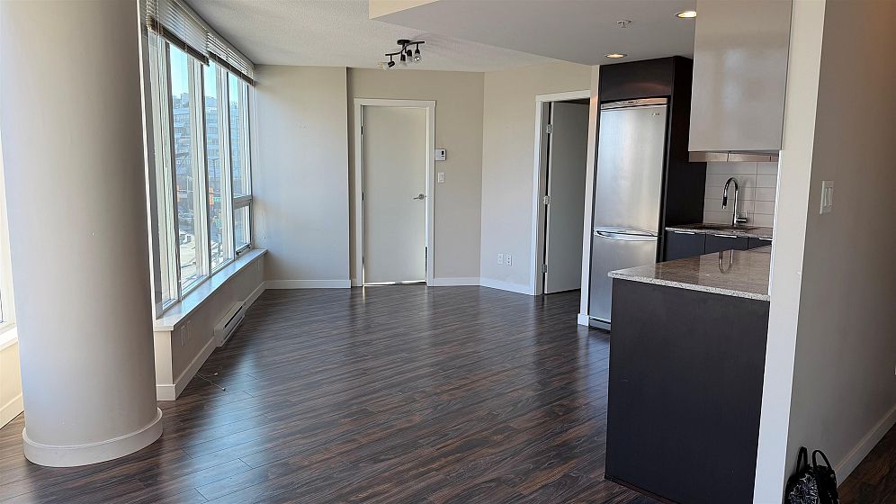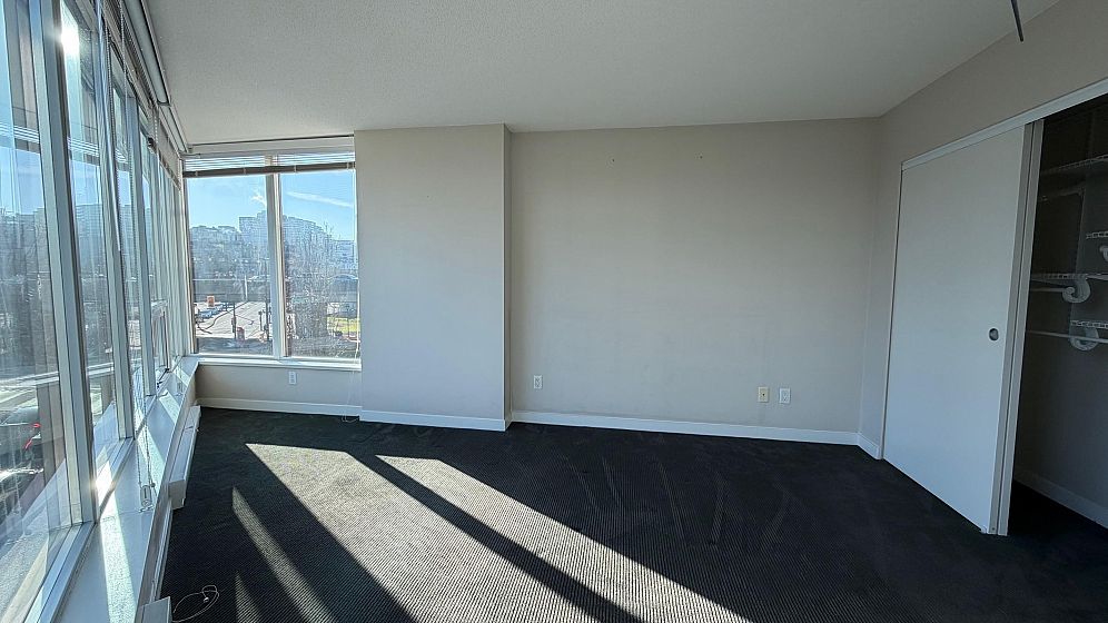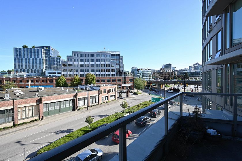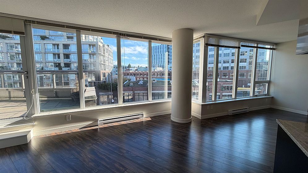 Amazing 1 Bedroom + Den at the iconic Maynard's Block! Experience contemporary living in this stunning unit, perfectly positioned on the west end of the building's signature curved wall. Enjoy an open-concept layout with a spacious south-facing balcony, ideal for indoor-outdoor living. The modern interior boasts wide plank flooring, a gourmet kitchen with granite countertops, stainless steel appliances, and floor-to-ceiling picture windows that flood the space with natural light. Steps from everything you need - Olympic Village SkyTrain station, The Olympic Village, the Seawall, shopping, downtown, and more. Don't miss this incredible opportunity! 1 parking. 1 storage locker. Immediate occupancy. Open House Sunday Feb 8 3-4pm