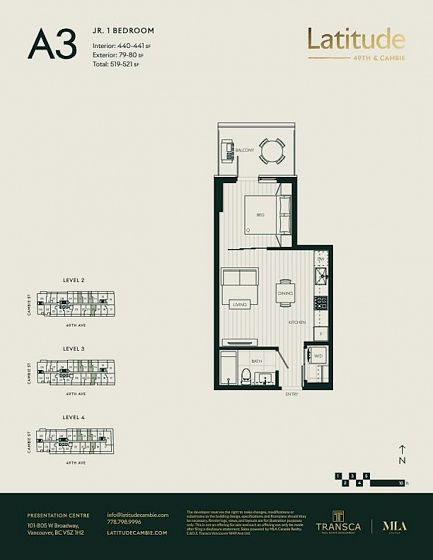Designed for modern West Side living, this Jr 1 bedroom home at Latitude offers an efficient layout in Vancouver's Oakridge neighbourhood at Cambie Street and West 49th Avenue. Steps from the Canada Line with quick access to Downtown, Oakridge, and YVR, the home features a sliding glass door to separate the bedroom for added privacy. The kitchen is finished with European-inspired cabinetry, quartz countertops, and a premium Miele appliance package including a gas cooktop and speed oven. Smart living is enhanced through the Mosino smart entry system integrated with an Ecobee thermostat and Hilo Smart Mirror. Residents enjoy curated amenities including a fitness centre, dining lounge with outdoor BBQ area, study rooms, children's playground, on-site childcare, and automated parcel lockers.