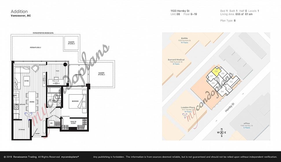 Welcome to Addition by Kenstone Properties centrally located in the heart of DT! This spacious corner unit on high floor offers 1 bdrm + flex + insuite storage, floor to ceiling windows and corner balcony, provide gorgeous views of city, mountain and English Bay, enjoy fireworks right at your home! Equipped with laminate floors, huge walk-in closet, custom cabinetry, stainless steel kitchen counter-top/appliances, and central heating/cooling system. Caretaker on duty. Amenities include outdoor garden/picnic area, gym & party room. Perfect 100 walk score with some of the best dining, entertainment, shopping and beaches close by. The Seawall, English Bay, Yaletown, and the West End are all a short walk away.