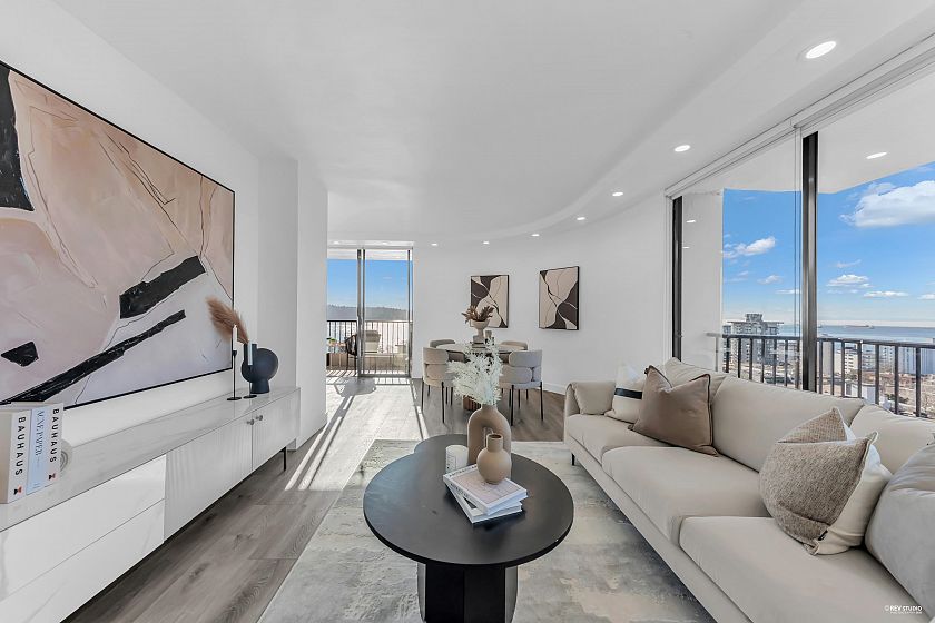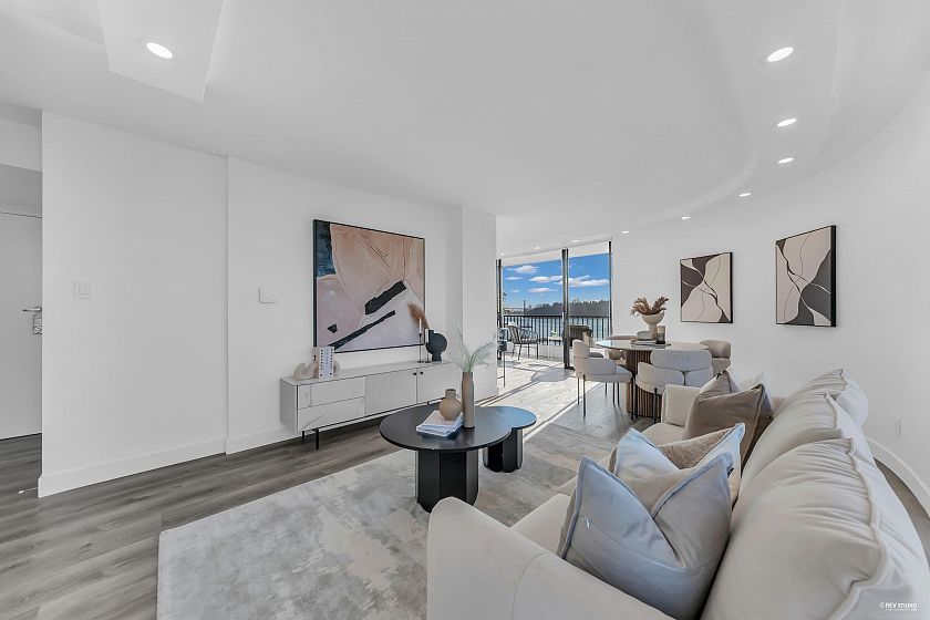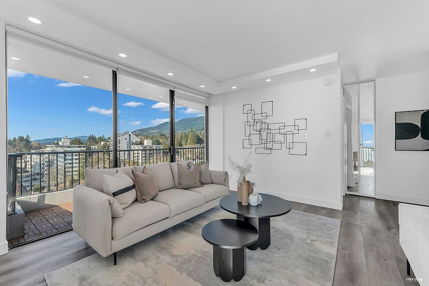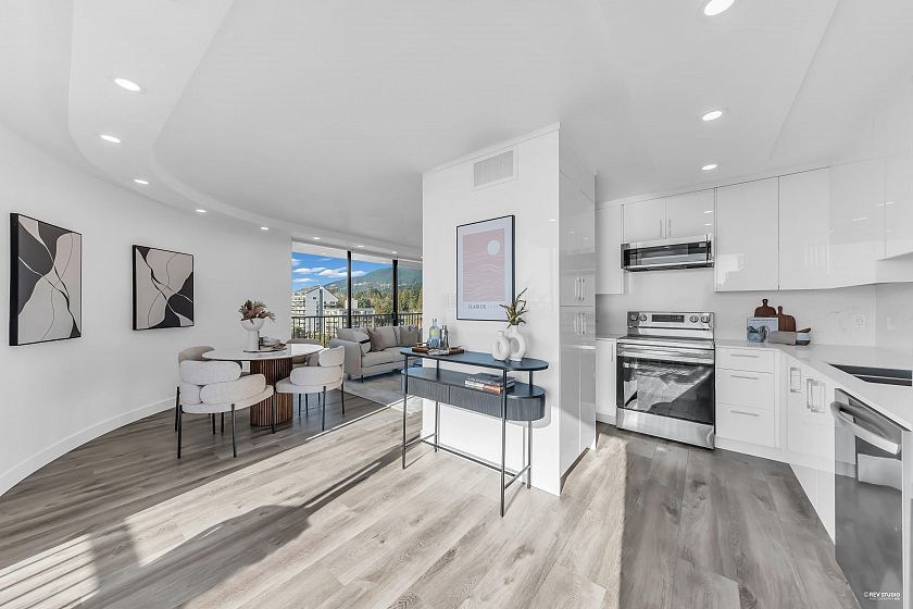 Experience sophisticated urban living at Westshore Place. This elegantly redesigned SW-corner unit offers a breathtaking panoramic view stretching from Mt. Baker to Vancouver Island. Perfectly positioned above neighboring buildings, this residence remains visually connected to the vibrant energy of Ambleside. Inside, floor-to-ceiling windows flood the spacious living areas with natural light, highlighting modern high-end finishes and in-suite laundry. The modern kitchen features sleek cabinetry and brand-new, top-of-the-line appliances. Enjoy an unparalleled lifestyle just steps from the Seawall, Aquatic Centre, and shops. Join a happy community in one of West Vancouver's most sought-after locations. Book your showing before it's gone!