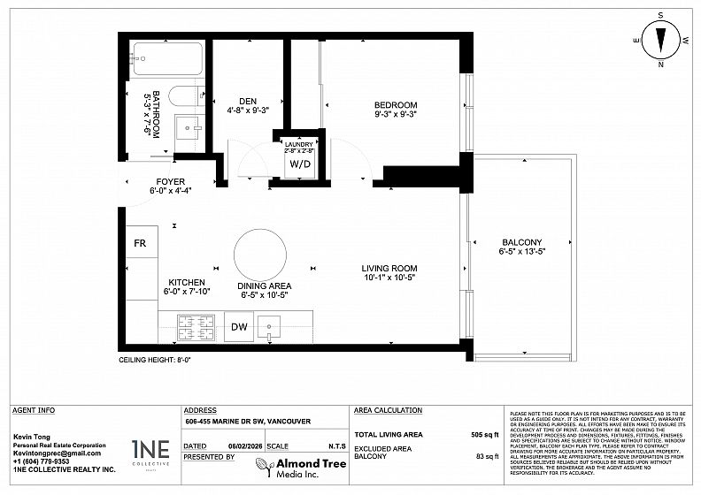 Welcome to W1 by Concord Pacific! Bright west-facing 1 Bed + Den on the 6th floor with a functional 505 sq ft layout. Features a modern open kitchen with stainless steel appliances, in-suite laundry, and a private balcony not facing a major road. Includes 1 storage locker. Prime location across from T&T Supermarket, Canadian Tire, and restaurants. Minutes to McArthurGlen Outlets & Costco, YVR, Richmond Centre, with direct access to the Canada Line SkyTrain. Ideal for first-time buyers or investors. No open house; showings by appointment only.
