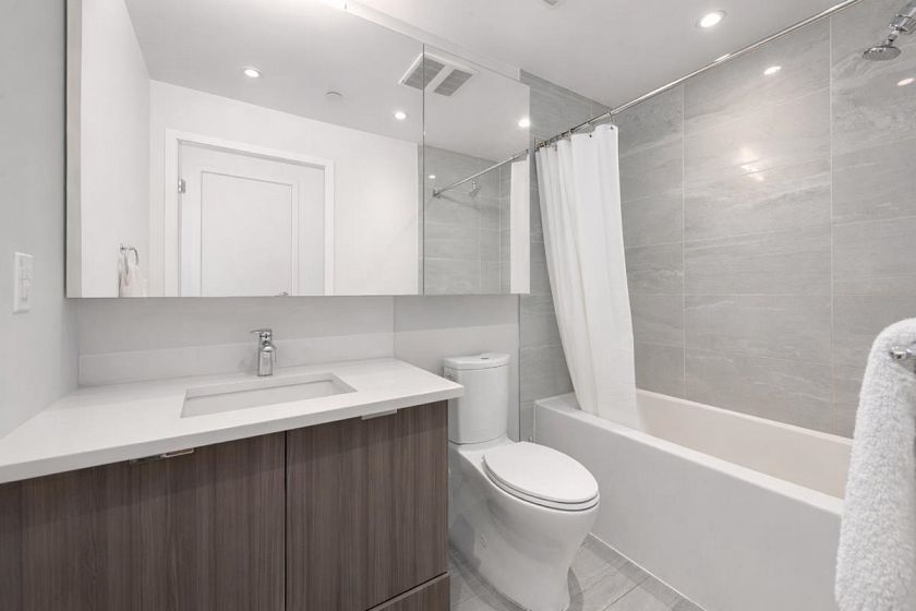 Come see this UNIQUE, one-of-a-kind 937 sqft two-level 1 bedroom + den + flex PENTHOUSE in Paradigm. This thoughtfully designed open-concept layout features a den on the main level and a flex on the upper level, offering exceptional versatility, ideal for a nursery, guest bedroom, home office(s), or additional storage. Equipped w/ stainless steel appliances, gas range, quartz countertops and A/C. The expansive 350 sq ft private rooftop patio is perfect for entertaining and outdoor living. Conveniently located just steps from Save-On Foods, Starbucks, restaurants, banks, riverfront trails and vibrant amenities. Experience life in River District, an award-winning master-planned community by Wesgroup Properties. Includes 1 EV parking and 1 storage locker. Don’t miss this opportunity!