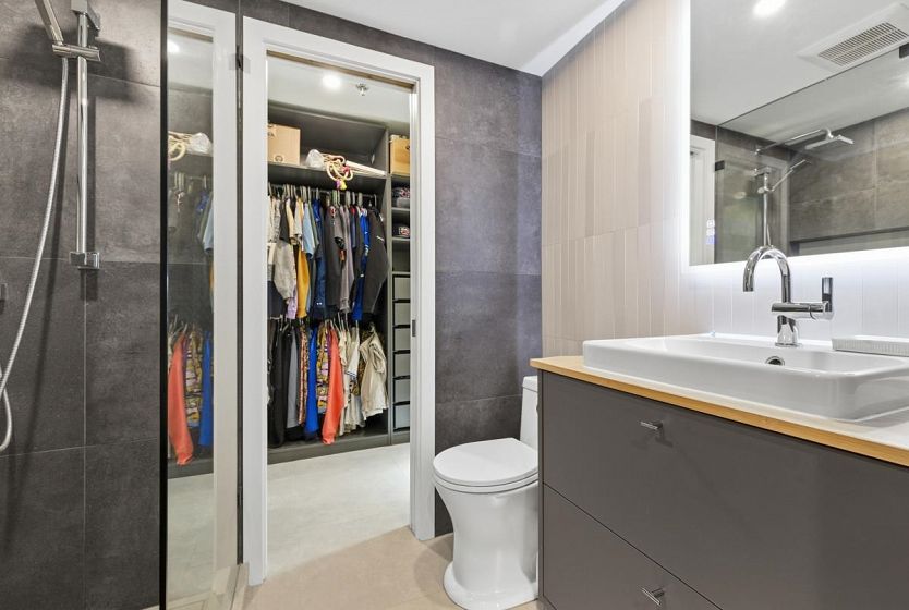 Completely renovated and truly move-in ready, this 1-bed, 1-bath ground-floor home offers bright south/east exposure and quality updates throughout. Enjoy radiant heated tile floors, a brand-new kitchen with green cabinets, stone counters, and new appliances. Spacious bedroom with walk-through closet w beautiful ensuite featuring a frameless glass shower, floating vanity, and backlit vanity /mirror. Comfortable living room with gas fireplace, custom storage, and live-edge shelving, plus in-suite laundry. Steps to shopping, City Hall, the Canada Line, and great dining. Pets allowed, 1 parking 1 locker.