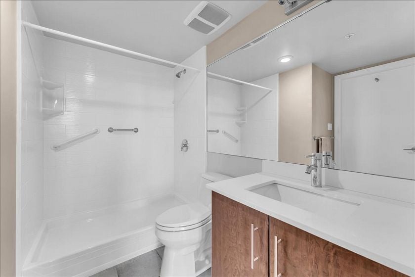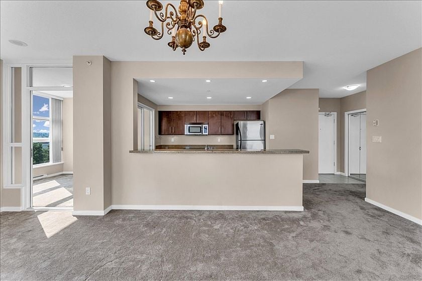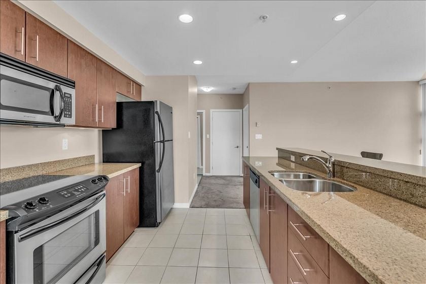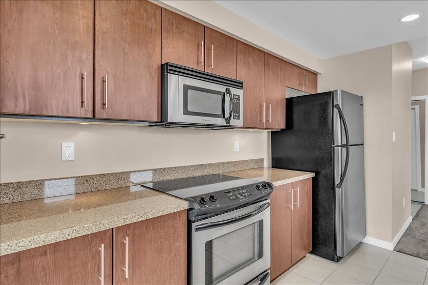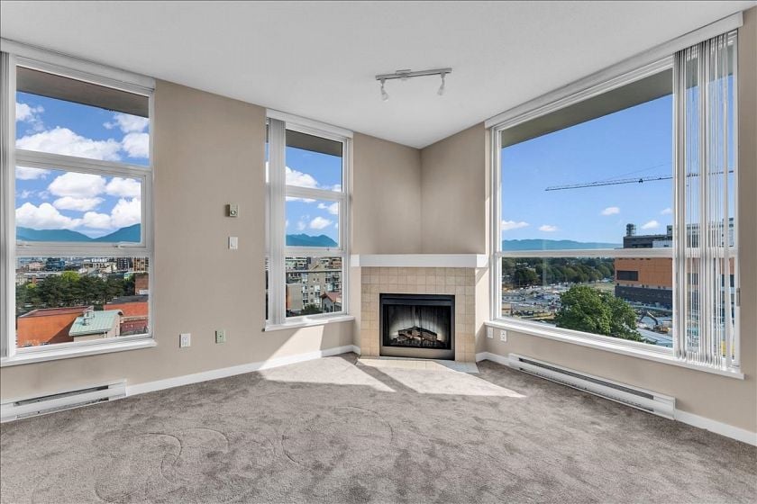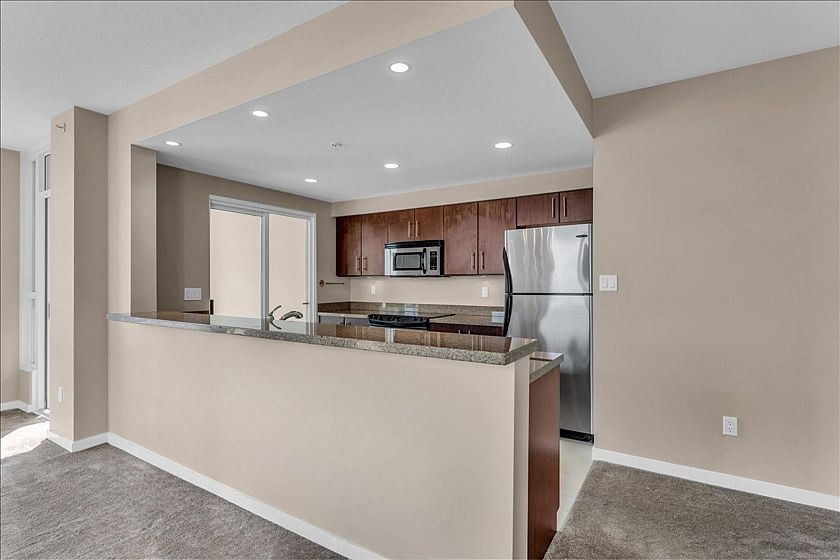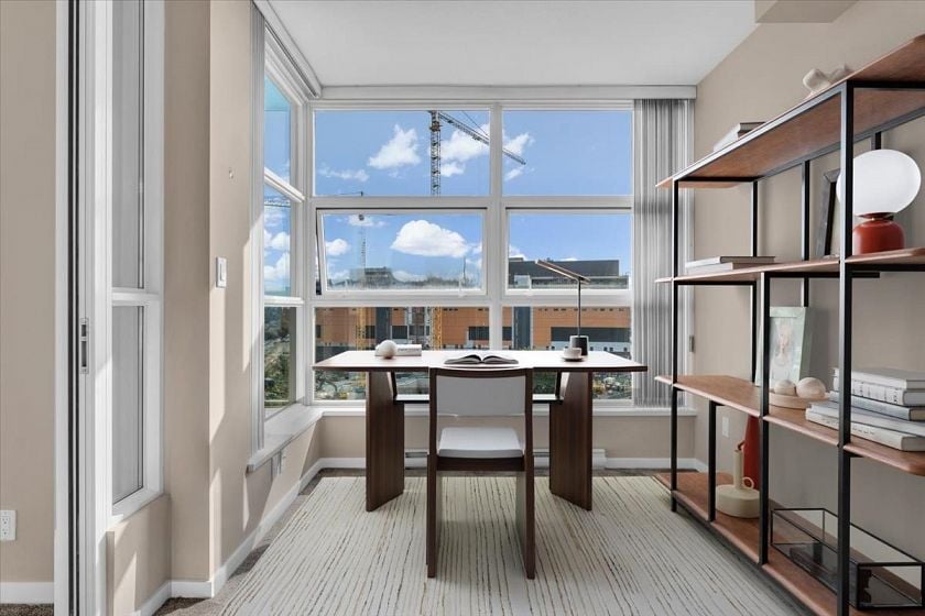 ESTATE SALE. This spacious 847 sq.ft. north/east-facing home offers 1 bedroom plus a versatile den/sunroom & 1 bathroom in a bright, open layout. Large windows wrap the corner unit, filling the space with natural light & showcasing views of the city skyline & North Shore mountains. The kitchen features granite counters & plenty of workspace, while the den provides a perfect spot to enjoy views or have a generous office space. The Bosa-built Sussex at Citygate is a well-cared-for building with amenities including a fitness centre, billiards lounge, bike storage, parking & storage locker. Ideally located steps to some of the best restaurants in the city the Seawall, SkyTrain, Olympic Village, AquaBus, the future St. Paul’s Hospital, both stadiums, Yaletown & Chinatown.