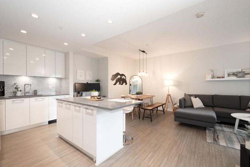 Welcome to Taluswood by Polygon ! You will be surprised at the amazing layout this immaculate 728 sq foot 1 bedroom offers !! The moment you enter you will notice the huge kitchen with island , offering stainless appliances , loads of storage and an open concept leading to bright and generous living and dining area & an excellent private south and west facing balcony too . The primary bedroom has a walk thru closet with access (semi ensuite ) and a large deluxe bathroom . The building offers an excellent gym , party and bike room , storage and 1 underground parking stall. All of this located in the heart of Vibrant Lynn Valley with hiking ,biking ,trails everywhere and just a short stroll to Shops , restaurants ,transport and great services .