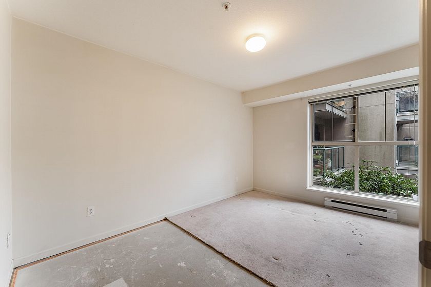 This spacious, south-facing 1-bedroom + den home offers approximately 730 sq ft of open-concept living overlooking the peaceful common courtyard. The kitchen features a peninsula with bar-stool seating and an adjacent dining area, flowing into the living room with a cozy gas fireplace and a window-and-sliding-door set that opens to a south-facing balcony. The primary bedroom is generously sized with two closets and direct access to the four-piece bathroom. A bedroom-sized den provides excellent flexibility as a home office, nursery, or guest room. Completing the home is a convenient laundry and storage room off the entry. Set in a superb location with a Walk Score of 97, you’re just steps from the Lonsdale Quay Market, the The Shipyards, popular cafés, and the SeaBus.
