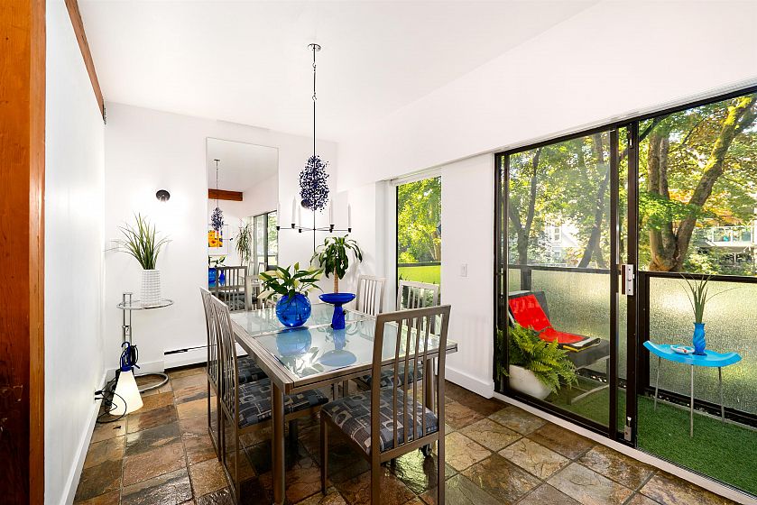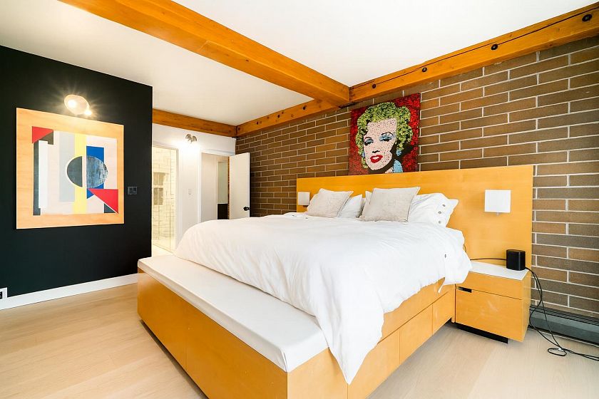 This one-of-a-kind vibrant urban retreat on coveted, tree-lined Nelson Street offers a rare blend of character & style in the heart of the West End. Spanning 1,308 sqft this corner home was originally a 3 bed/2 bath & has been transformed into a spacious 1 bed/2 bath sanctuary w/ in-suite laundry & the option to revert. Striking exposed wood beams, rich brick feature walls, and slate floors set an unforgettable tone. The chef’s kitchen boasts bold cabinetry, stone counters, & a generous space perfect for entertaining, while the open-concept layout flows seamlessly into the living & dining areas. Complete w/ 2 parking spots, this private oasis is just steps to beaches, shops, cafes and the best of DT living.