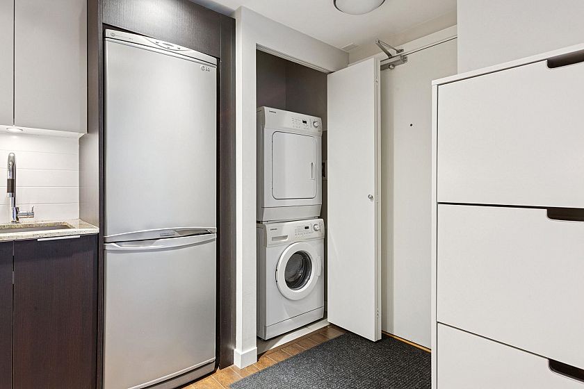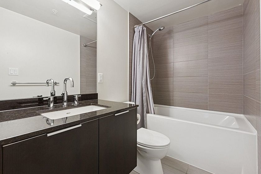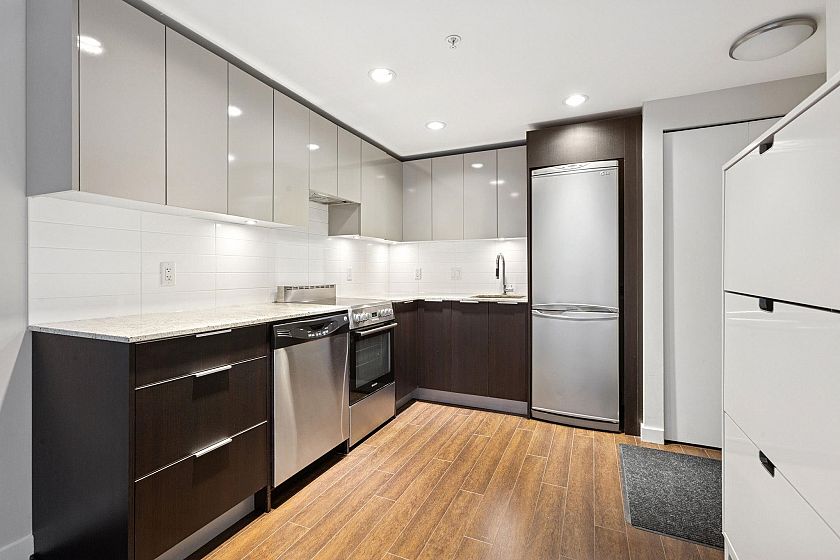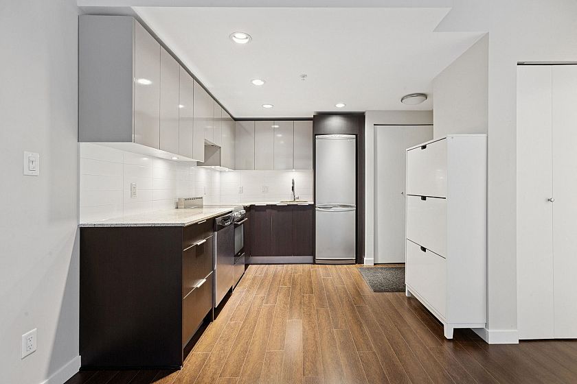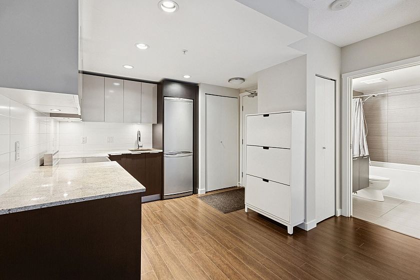 MAYNARD'S BLOCK BY AQUILINI. Super functional 1 bedroom home with parking -steps to EVERYTHING. This efficient home features a gourmet kitchen with sleek appliances, stone counters and contemporary cabinetry, flowing on durable flooring into the open concept dining/living space and private bedroom. The bathroom features a soaker tub and vanity with ample storage. All of this in the most convenient location - just steps to the Canada Line, Cambie Village shopping (SaveOnFoods, BestBuy, Whole Foods), the Seawall, Olympic Village amenities (LondonDrugs, UrbanFare, Legacy), the Expo Line, Main Street shopping/eateries and craft breweries/bakeries. Building amenities include concierge and fitness centre. Includes 1 Parking & 1 Storage. ***OPEN HOUSE: SAT FEB 28 2-4PM***