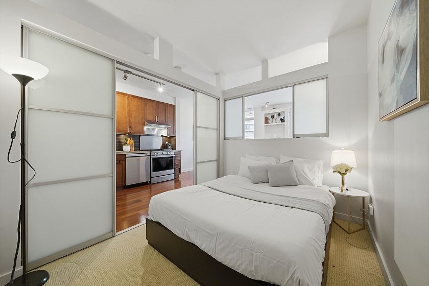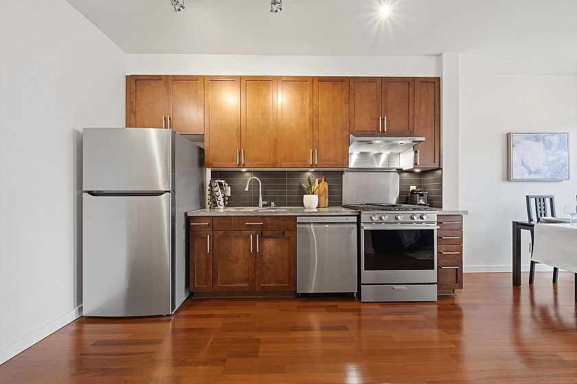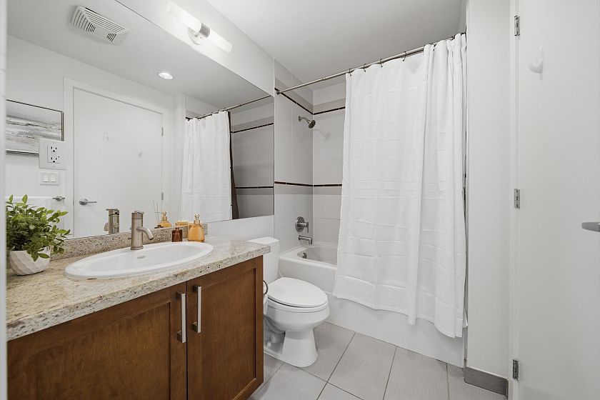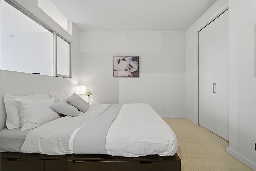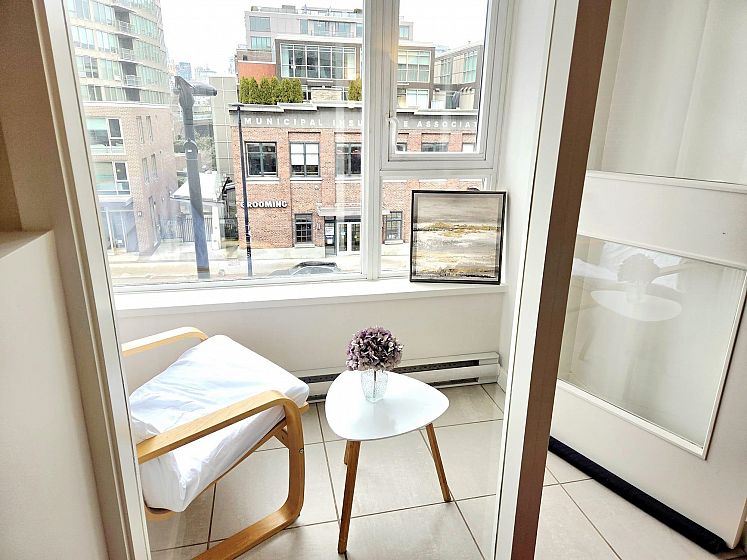 Welcome to the Montreux at False Creek! This well-designed home features a large bedroom, den (suitable as a second bedroom), office, and flex room—ideal for first-time buyers, small families, or investors. Highlights include 9' ceilings, hardwood floors, a cozy fireplace, and an open living/dining area. The kitchen is upgraded with stainless steel appliances and a 5-burner gas stove with a hood fan. Located in the heart of Cambie Village, you're just minutes from Olympic Village Station, the Seawall, shops, cafés, Save-On, Whole Foods, Canadian Tire, Home Depot and more. Amenities include a gym, a meeting room, and a lush courtyard. Comes with one parking. One dog or cat allowed. Come and make this your home.