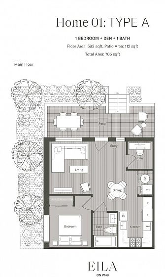 Welcome to Eila on W 49th! Located in the highly desirable Oakridge neighborhood, close to Langara Golf Course, the new Oakridge Mall, and 49th SkyTrain station. This bright 1 bed + den features an open concept floor plan with large windows that fill the space with natural light. The kitchen boasts a premium integrated appliance package for modern convenience. Just right outside is a spacious patio area and easy access to Oak Street. School catchment: Jamieson Elementary and Churchill Secondary. Includes 1 parking stall. Call for your private showing!