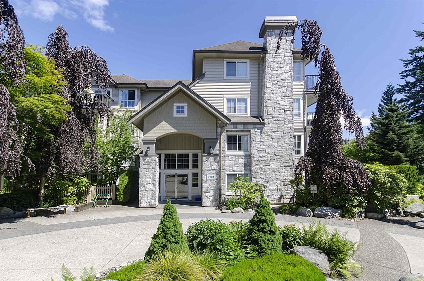 Always popular Highgate! Fully rain-screened building in the heart of Lynn Valley, just steps to shops, restaurants, Lynn Valley Centre, library, and more. This well-laid-out 1-bedroom home features an open floor plan, gas fireplace, in-suite laundry, large soaker tub, and includes all kitchen appliances and window coverings. Enjoy a generous covered balcony plus great building amenities such as a fitness centre, ample visitor parking, car wash station, and secure parking. Pet-friendly complex.