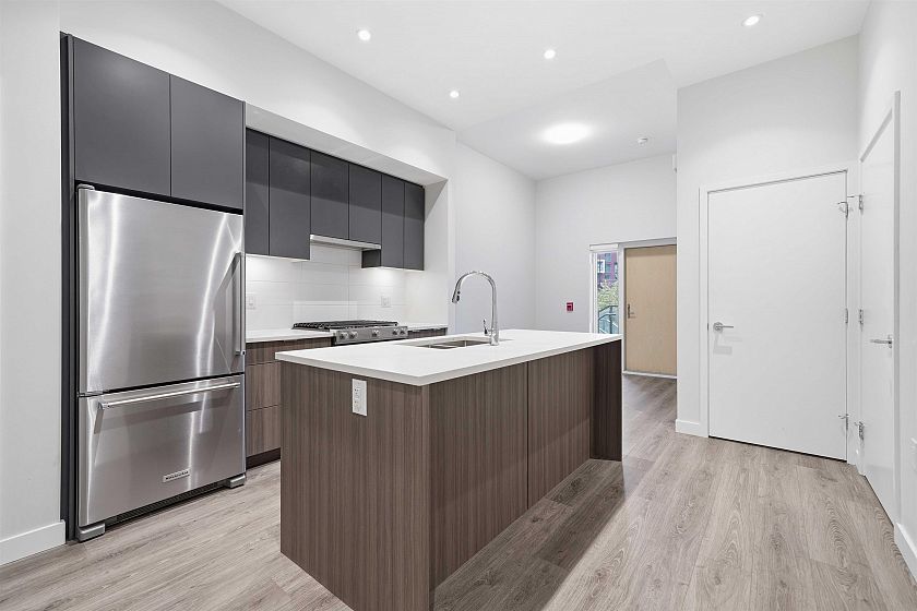 Discover this inviting 1 bed+den home in the heart of the River District, offering rare ground-floor living with private walk-up entrance & patio, perfect for pet owners, cyclists, those who love convenience or evening scenic riverfront walks. Thoughtfully designed with open layout, high ceilings & premium finishes throughout including KitchenAid stainless steel appliances, gas range and quartz countertops. Enjoy year-round comfort with efficient heat pump providing both heating & cooling. With 1 parking stall & 1 oversized storage locker, you have plenty of space in & outside of your unit. Top-notch building amenities including concierge, fitness centra, yoga/TRX studio, rooftop terrace w/ BBQ & lush courtyard. This home checks every box. OPEN HOUSE: SUNDAY FEB 22ND 2:00-4:00PM.