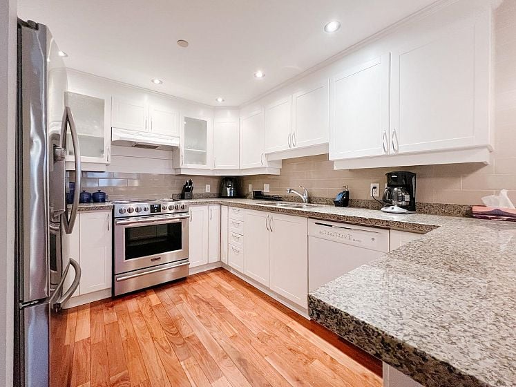 This rare Dundarave Landing condo offers one bedroom with an ample den / office space that could easily be used as a second bedroom if needed. One bathroom, fresh white kitchen with granite counters, an open floor plan perfect for entertaining, plus an Owner who is open to a few different options to make it work for you – a rarity in the rental market! Hardwood floors throughout and style to spare, this apartment shows beautifully and offers south exposure and ocean views. Extra large 262 sq ft private deck that is perfect for entertaining. Access to the beach, West Vancouver seawall and Dundarave Village is literally just outside your door offering numerous restaurants, coffee shops, a grocery store and every other amenity you could need.