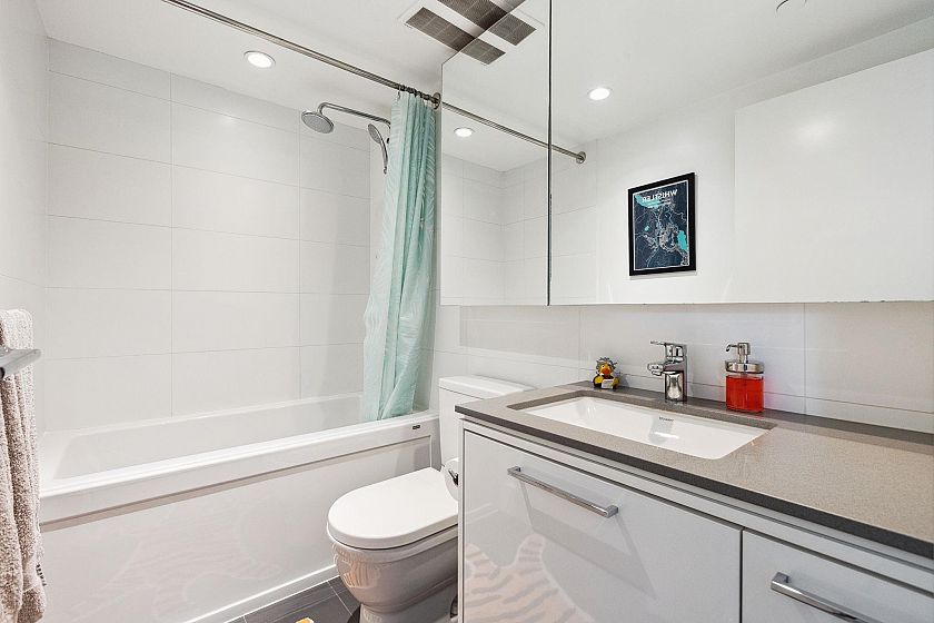 Don’t miss this stunning AIR CONDITIONED 1 bdrm + den home with breathtaking UNOBSTRUCTED mountain views at Compass in Seylynn Village. Enjoy an open-concept layout feat a sleek, modern kitchen with ample counter & storage space, S/S appl pkg with a Bosch gas cooktop & an island with bar seating. Spacious living area with floor to ceiling triple-glazed windows to showcase the spectacular views & a large covered balcony with gas hookup invites year-round outdoor enjoyment. Additional highlights incl over height ceilings, full size washer/dryer, den/office perfect for working from home, prkg & a storage locker. World Class Amen with Denia Club - 14,000 SF facility with fully equipped Gym, 25m lap pool, hot tub, steam, sauna, guest suite, party, yoga & dance room.