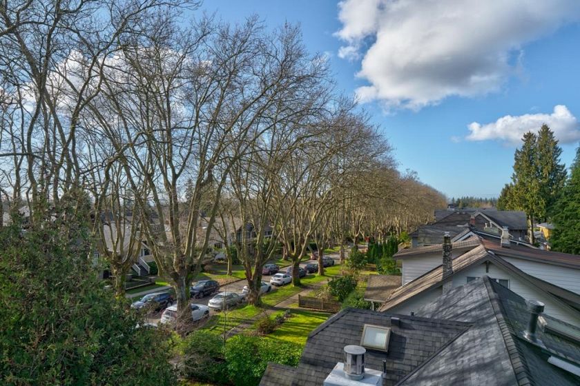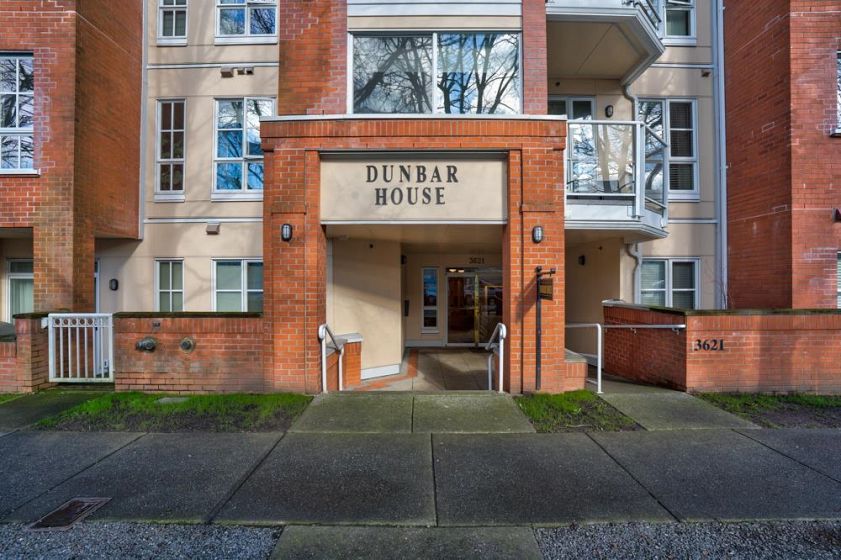 Welcome to Dunbar House! This Northwest corner 1 bed & 1 bath home is located on the top floor of this well managed building with views overlooking the tranquil tree lined street and beyond to the downtown Vancouver skyline and North Shore Mountains! Inside, this spacious home features a lovely fireplace, oversized patio, skylights and over height ceilings welcoming in plenty of natural light throughout the year. The kitchen features a sizeable pantry/laundry room and a nook, perfect for an eating area or small office. Located just steps from Dunbar Village and Pacific Spirit Regional Park - everything you need is just outside your door! Highlights: Rooftop deck offering 360° views, a gathering/games room & 2 underground parking stalls.