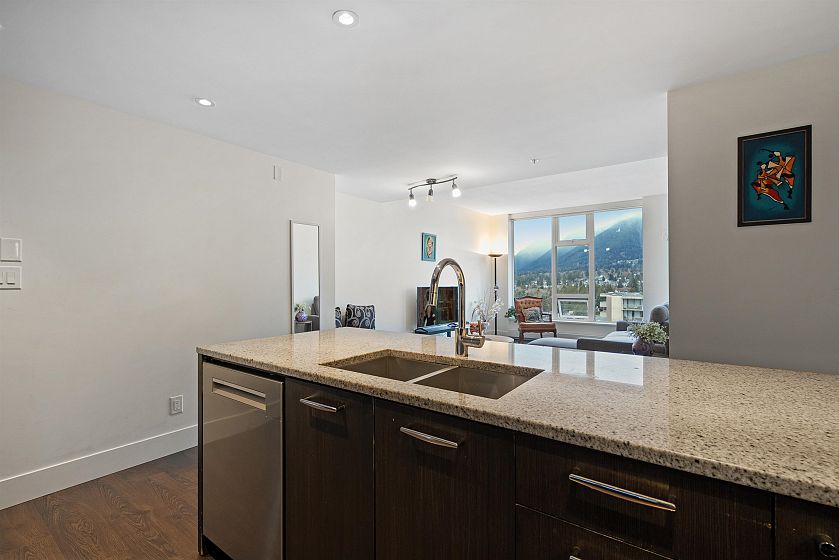 Fantastic Value at "15 West". Hurry to view this outstanding upper level suite with unbelievable panoramic mountain vistas from Cypress to Seymour from all rooms and including Lions Gate Bridge from your larger private balcony! Lovely, comfortable one bedroom suite in beautiful condition. Newer appliances in your over-sized chef's kitchen. Just move in and enjoy this convenient location in Central Lonsdale. Walk to everything or bus it at your convenience. What a life style, and at an incredibly affordable price!! Gym, and bike storage for your convenience. Pets ok! One parking and one storage locker. Excellent guest parking underground with electric re-charge accessibility. Priced well below assessed value! Immediate possession available. Open Sunday Mar 8, 2-4 or by appt.