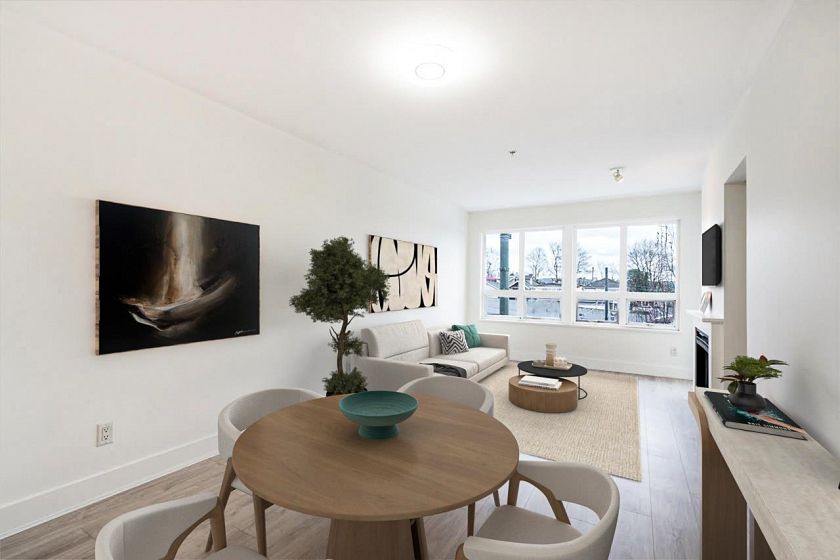 Location Location Location! The Zoey, located right beside Highway One, across the street from PNE/Playland, Empire Field & Mcdonalds and steps to tons of shops & restaurants along Hastings Street! A spacious 1 bedroom & den 765 Sq Ft unit with southern views! Features include newer laminate flooring throughout, a new washer/dryer & in suite storage! Tons of sunlight throughout the unit. Hot water included in your strata fee. One parking stall included. Short drive to New Brighton Park, Confederation Park including a public library, Sohen Gill Sports Box, a running track, Eileen Dailly Leisure Pool & Fitness Centre and Brentwood Mall. Less than a 20 minute drive to Downtown Vancouver, Grouse Mountain, Burnaby Mountain/SFU & close to North Van!