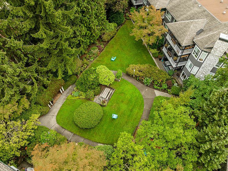 Welcome to The Laurels - Nestled in a warm friendly neighborhood, conveniently located across the street from Lynn Valley Centre for shopping, library, restaurants, top schools , transportation and Karen Magnussen Community Rec Centre. Ideal starter home or retirement property (No stairs). The spacious den is designed for multi uses including media & hobby rooms or a 2nd spare bedroom (if needed) .Property comes with entertainment sized living room, a large kitchen / eating area, a cozy gas fireplace, and is steps away from a private covered balcony designed for entertainment to delight guests, Property comes with near new stainless-steel premium appliances, one underground parking and one very large storage locker. Local mountains offer hiking and biking trails. EV Stations are avail.