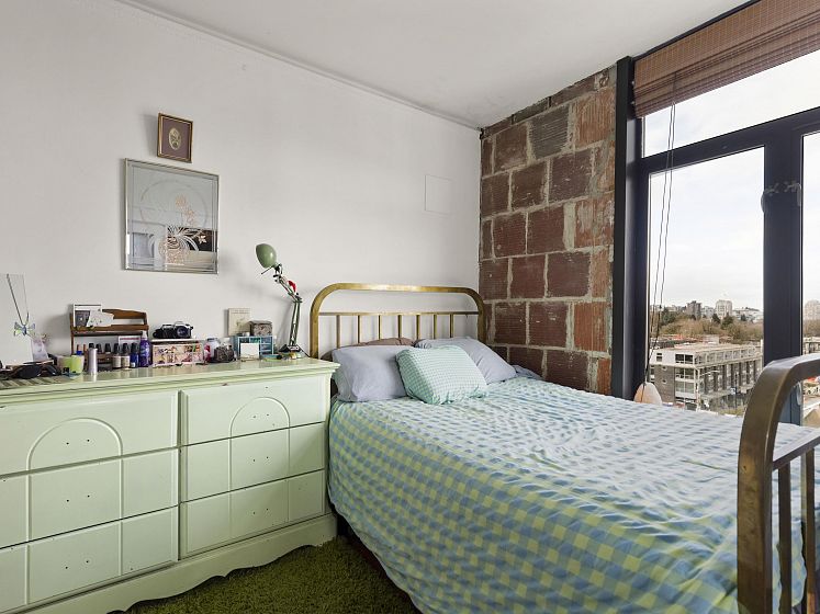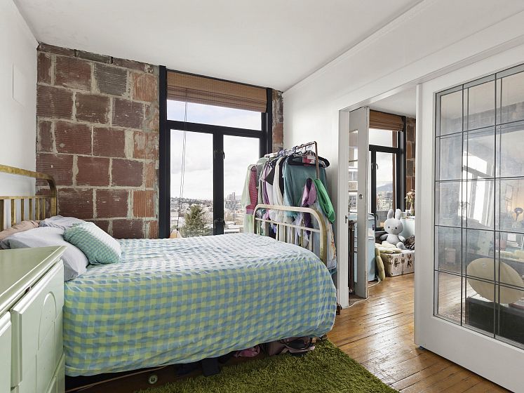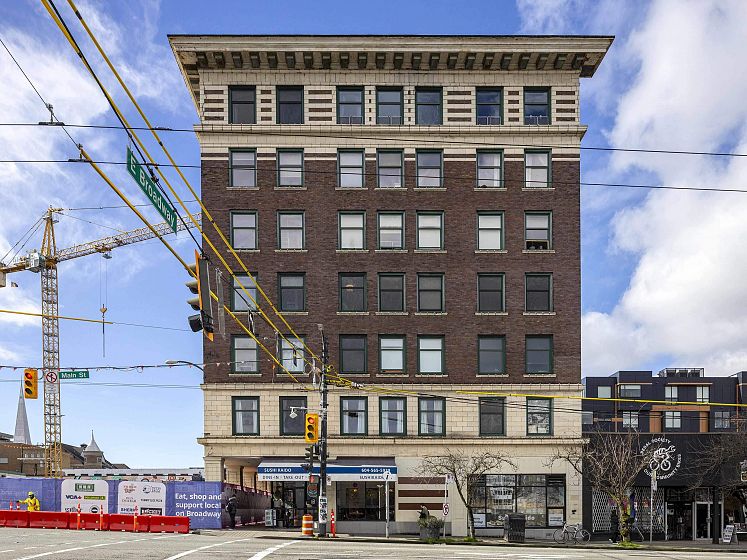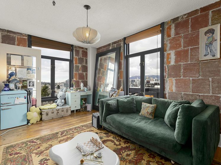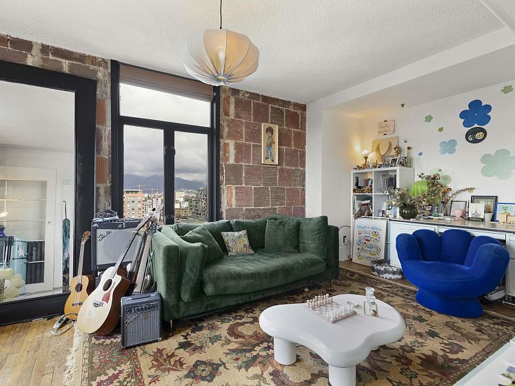 The Lee Building has been a landmark in this vibrant Mount Pleasant East neighbourhood for over a century. 1-bedroom, 1-bath top-floor NW facing corner home blends vintage charm with high ceilings, fir floors, antique radiators, and exposed brick walls. Beautiful city and mountain views extend in all directions. Oversized windows let in the natural light to fill your space. Upgrades include a newer bathroom, a gas stove and the building has been replumbed. Transit, shops, breweries and restaurants, all right outside your door. The undivided ownership structure does not permit financing- all cash required. Tenant occupied, so 24 hours' notice please. Great investment opportunity.