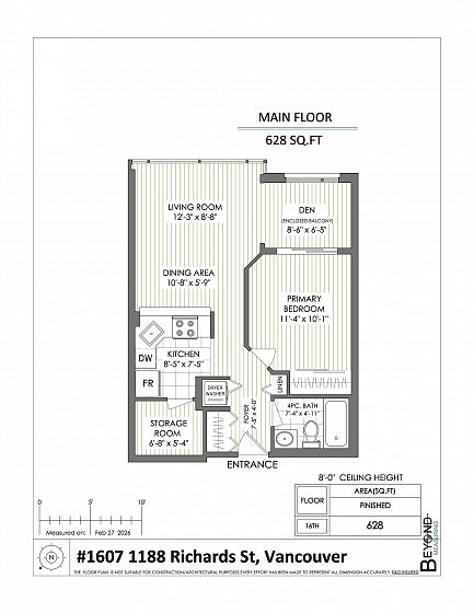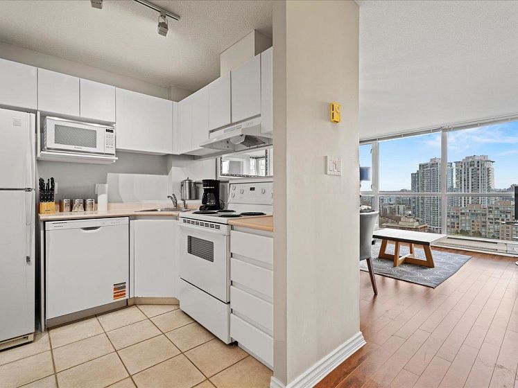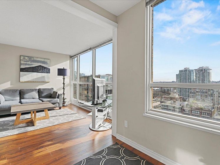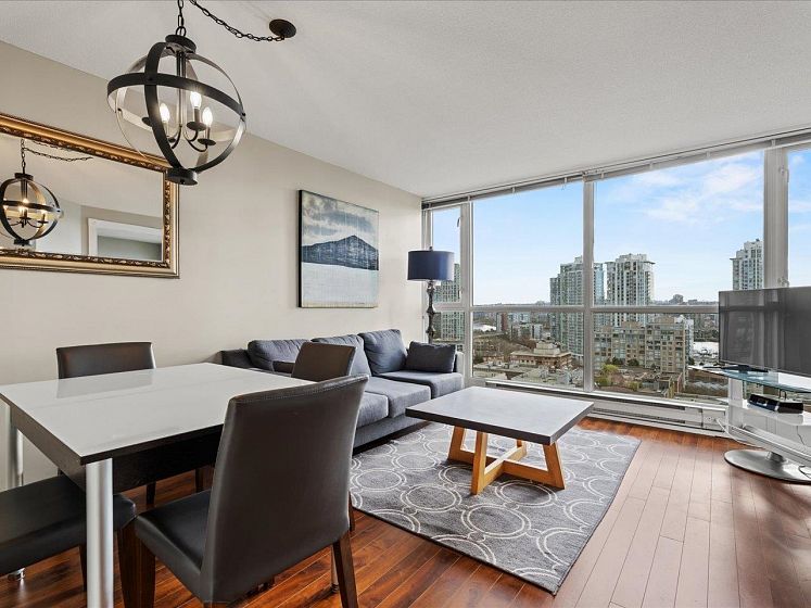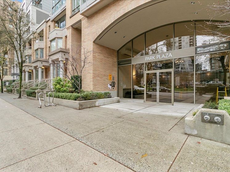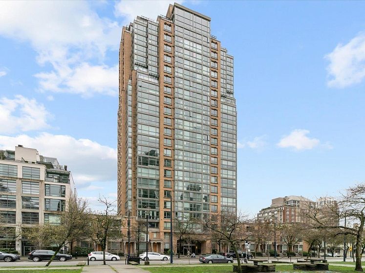 Welcome to Park Plaza ~ perfectly situated in the heart of vibrant Yaletown. This bright & efficient 628sqft 1 bed + den + flex home offers a smart layout with no wasted space—ideal for first-time buyers or investors. Perched on the 16th floor, this home features expansive windows that bring in plenty of natural light & showcase city/water views. The open-concept living & dining area flows seamlessly into a well-appointed kitchen. The spacious bedroom comfortably fits a queen-sized bed, while the versatile den is perfect for a home office & the additional flex space provides extra storage or pantry options. Fully rainscreened building, windows (2007), re-piped (2012), new elevators (2014), updated lobby and gym (2014), EV charging on P1. 1 parking, 1 locker. Offers as they come.