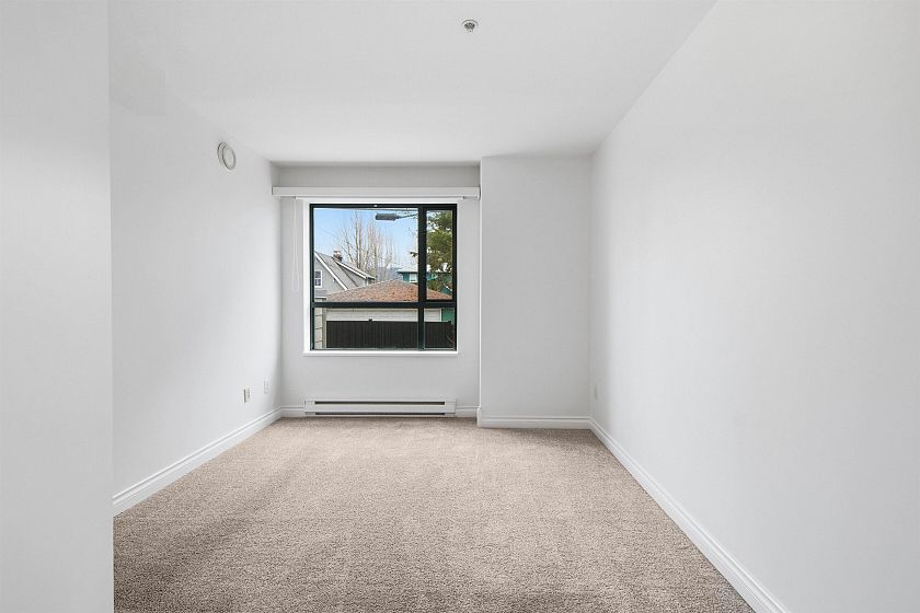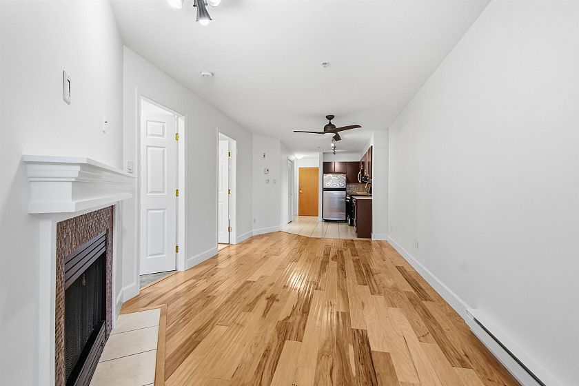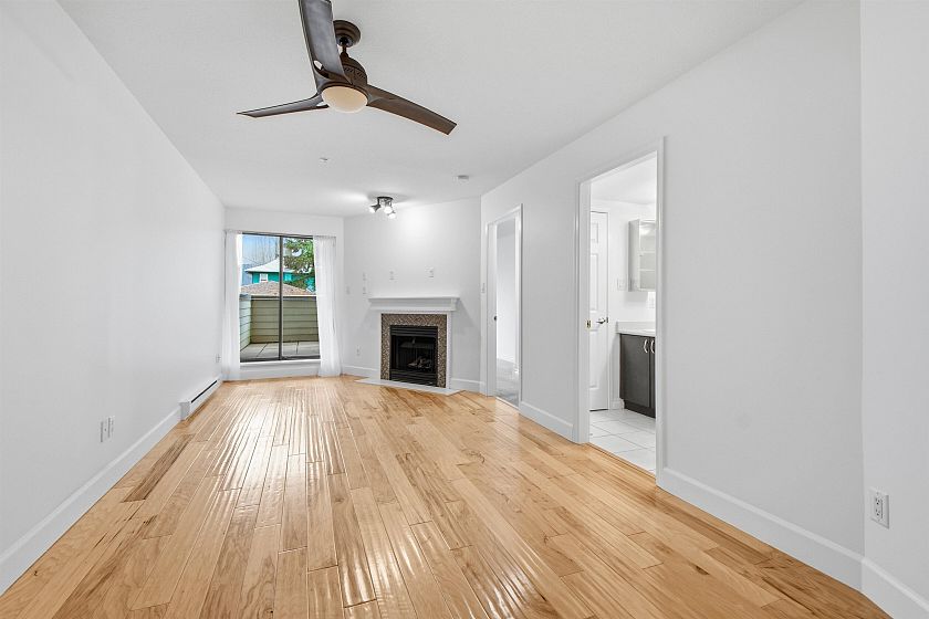 HASTINGS SUNRISE! 1 Bed + Den cutie in the heart of this vibrant neighbourhood! Offering 672 sq ft of well-designed living space, this home features stainless steel appliances, gas range, cozy gas fireplace, in-suite laundry, and bonus in-suite storage. Hardwood floors add warmth throughout, while the spacious den is perfect for a home office with custom work space. Enjoy peaceful north-facing exposure on the QUIET side of the building. Just steps to shops, local eateries, parks, community centre, and transit. Only 10 minutes to Downtown and 5 minutes to the North Shore. An unbeatable location! Call to view. OPEN HOUSE: Sun. March 15th 2:00-3:30
