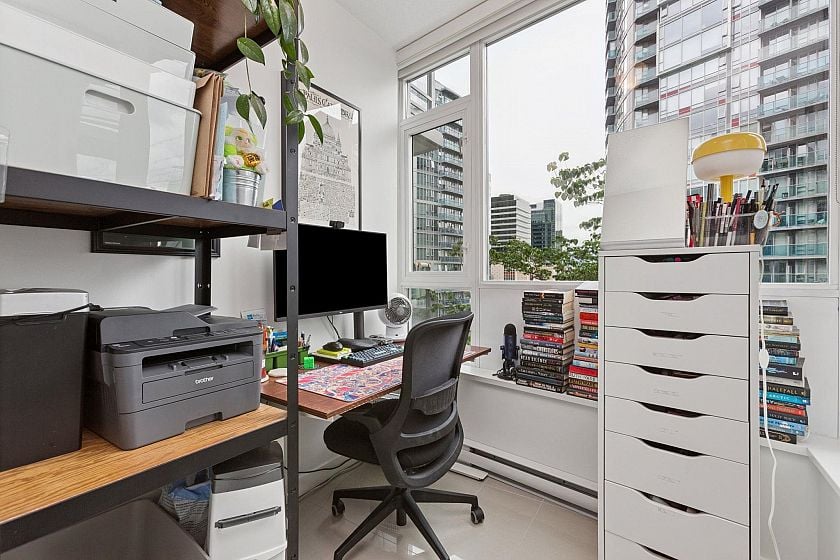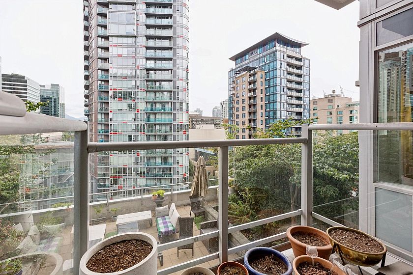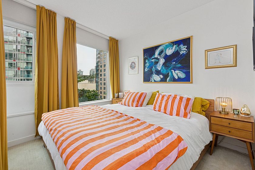 RAFFLES ON ROBSON – 1 BED + DEN + SOLARIUM Bright & functional home in one of DT Vancouver’s most connected locations! This open layout features a modern kitchen w/ Miele & Liebherr appls, stone counters & custom cabinetry. Enjoy a separate den for your office, a sunlit solarium for lounging or creative space, plus a private balcony for fresh air & city views. Relax in the spa-inspired bath w/ soaker tub + separate shower. Fantastic building amenities: concierge, gym, whirlpool, theatre, lounge, BBQ deck & bike storage. 1 parking incl. Steps to Robson, Yaletown, seawall, library, Rogers Arena, shops, dining & transit. A walkable, well-kept home in a prime location!