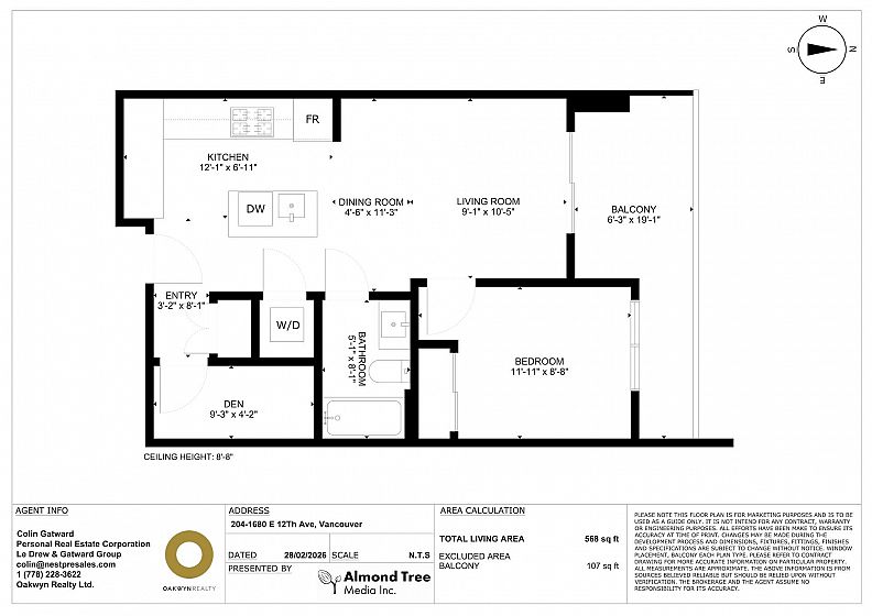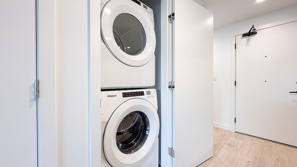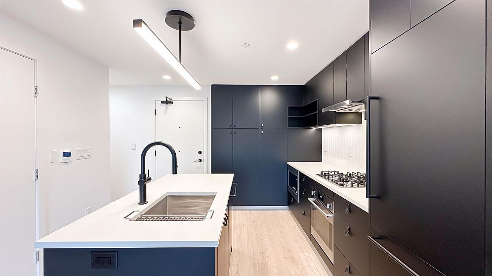 GST INCLUDED! Welcome to this brand new N facing 1 bed + den home at ACE by Wesgroup! Laminate floors thruout; heat pump provides heat & AC; high end kitchen incl. Italian cabinetry w/ leather pull handles; integrated Fulgor Milano appliances; kitchen island; full height pantry cabinets; quartz c/tops + tile backsplash. View of mountains to N; spacious full width balcony; bathrm features heated tile floors; full size W/D; EV ready parking & storage included. Amenities incl lounge with kitchen, outdoor terrace with BBQ. Located in heart of Commercial Drive featuring retail, service & restaurant options at your doorstep; Walk Score 96; Transit Score 92; Commercial Broadway SkyTrain & Trout Lake a short stroll. Schools - Stratford Hall; St Joseph's; Queen Alexandra all close by!