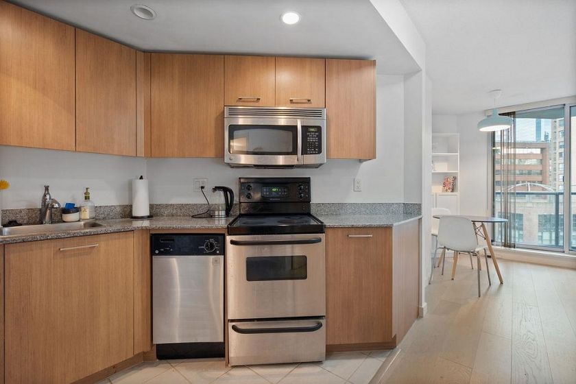 Bright and efficient Jr. 1 Bed / 1 Bath in the heart of Downtown Vancouver featuring a smart open layout with laminate floors, granite countertops, stainless steel appliances, and in-suite laundry. Located in a well-maintained, proactive building with on-site caretaker. Located just steps to the Seawall, Yaletown, transit, cafés, and restaurants. Pets and rentals allowed. An unbeatable entry point for first-time buyers or investors.