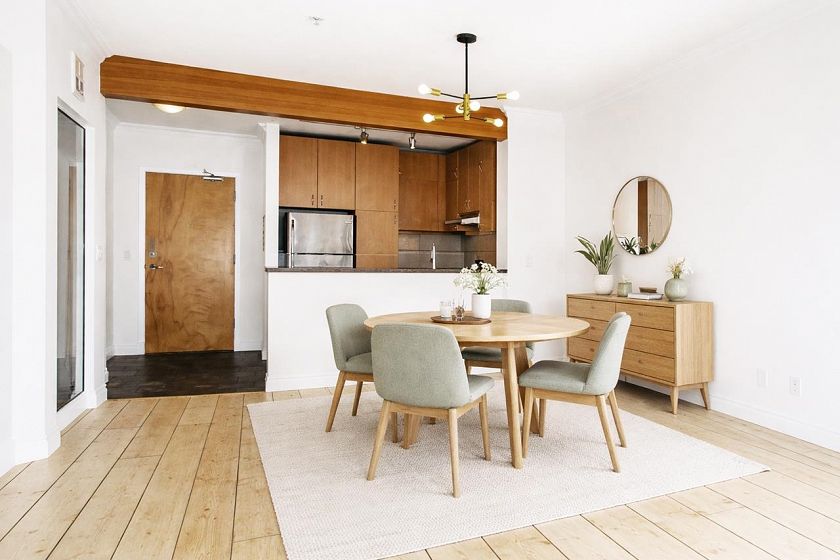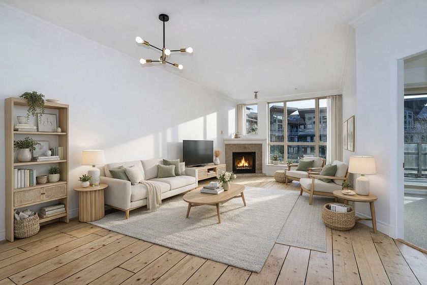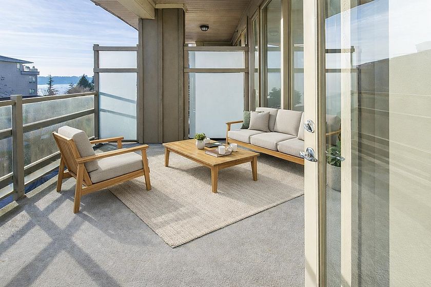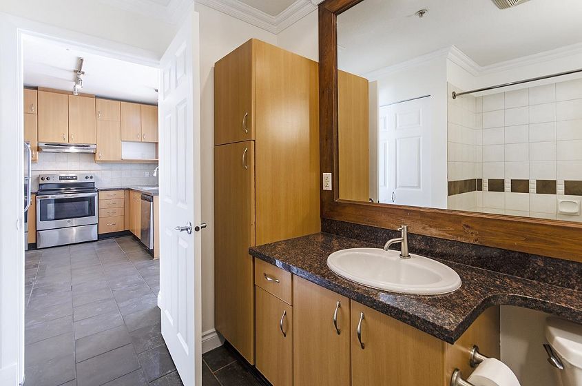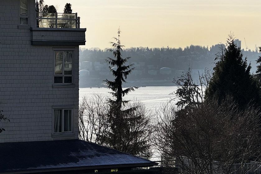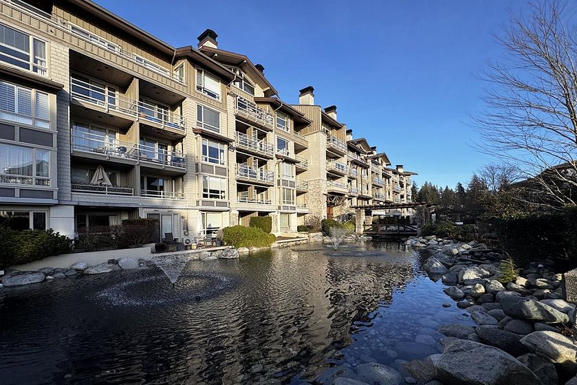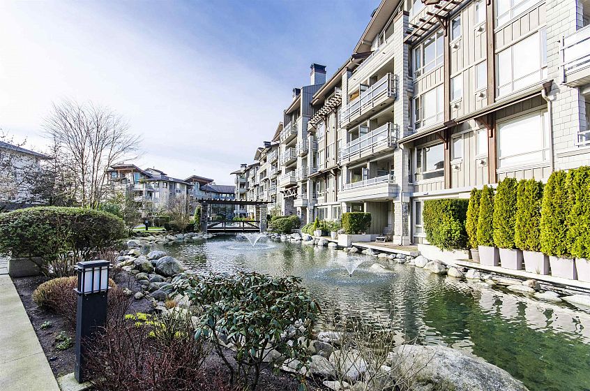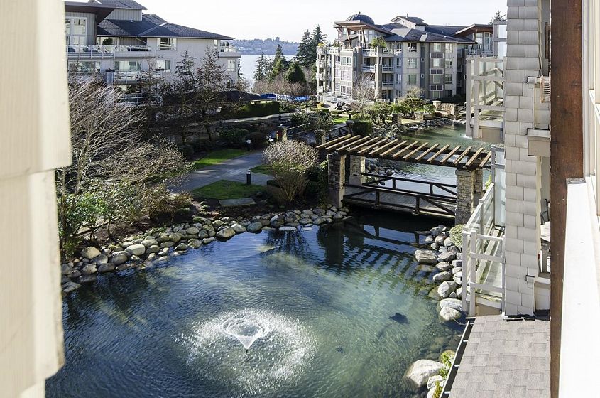 Come home to Seasons at Raven Woods! This south facing home offers views of the pond and fountains, the inner courtyard and Burrard Inlet beyond. Features include wide plank softwood floors, granite counters, stainless steel appliances, in-suite laundry and a gas fireplace . Freshly painted, new light fixtures and floors redone! The open kitchen and living room with 9 ft ceilings lend an airy spacious vibe and the glassed in den could double as a spare bedroom. The resort-like grounds overlook Burrard Inlet. The oversized balcony is a perfect place to watch the sunset over the inlet while enjoying a cool drink. Raven Woods makes coming home feel like a vacation! Parking 53 Storage 11. Entry code 049 .Open Sunday March22, 4:30-5:00