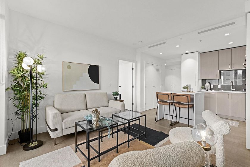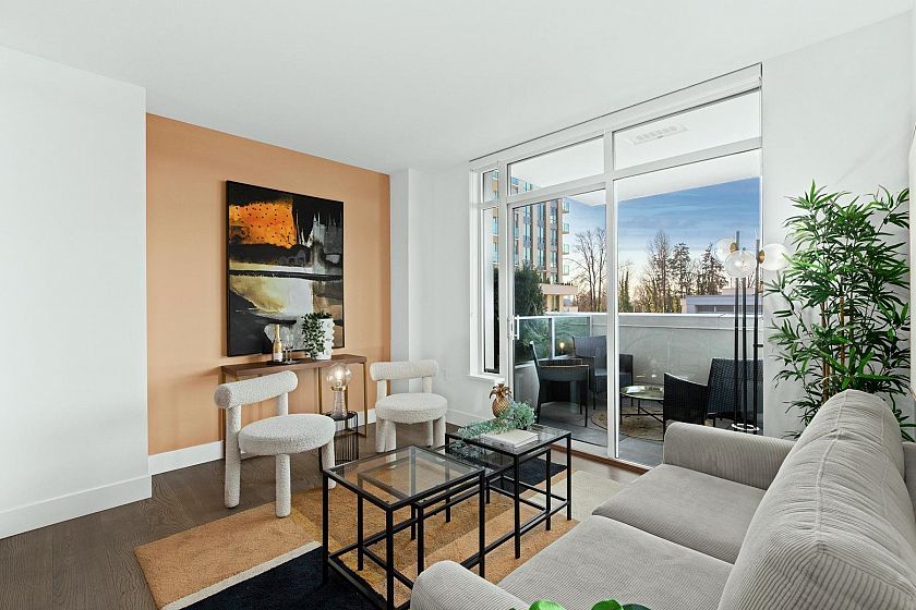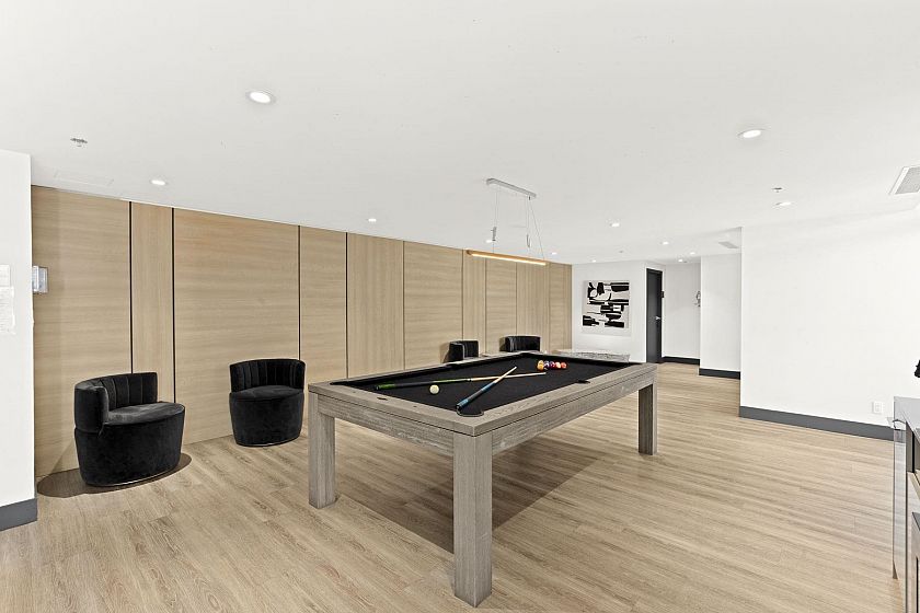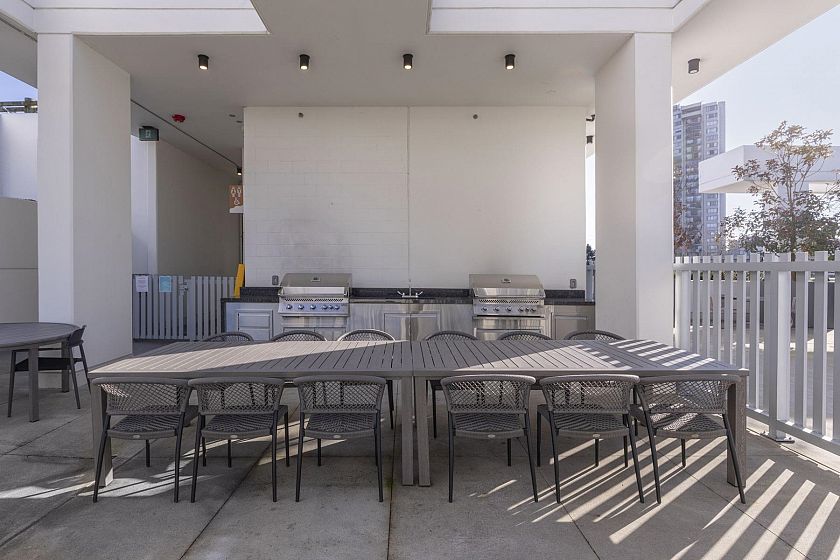 Welcome to this stunning 1-bedroom, 1-bathroom luxury corner suite in the prestigious Park West Tower! Fully air-conditioned, this stunning unit boasts high ceilings, hardwood floors, and Miele appliances. The spacious, oversized balcony is a standout feature, perfect for outdoor entertaining or relaxing. Residents enjoy top-tier amenities such as a fully equipped gym, outdoor pool, hot tub, outdoor kitchen, BBQ area, and entertainment lounge. Includes 1 parking and storage. Located just steps from Park Royal Village and minutes from Downtown Vancouver, this home offers an unparalleled lifestyle in an unbeatable location.