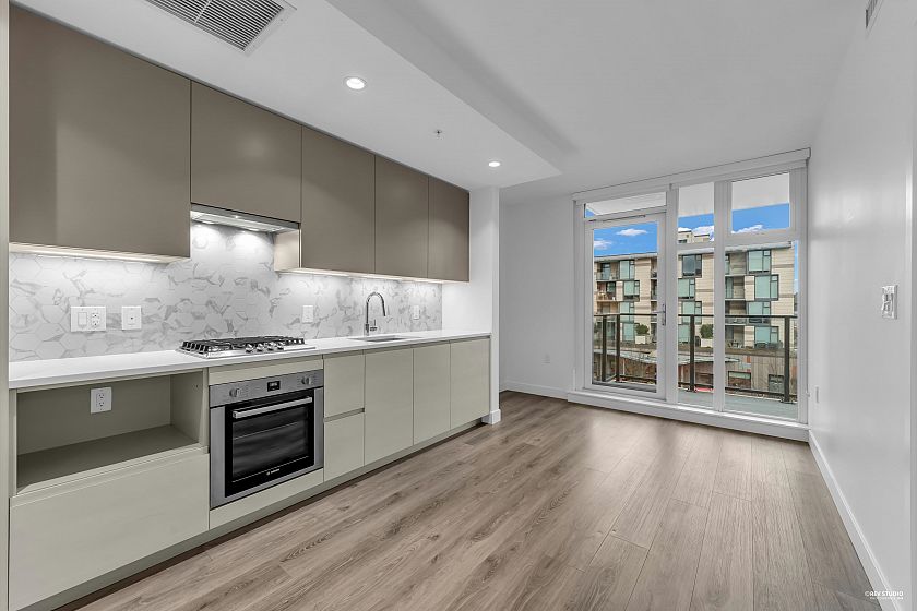 One bed + one bath quiet courtyard facing unit located in the vibrant Fraser Commons community! Unit features a bright, open-concept layout with high-end Bosch appliance package, quartz countertops, European cabinetry and functional living spaces. Amenities includes concierge service, fitness centre, rooftop patio with BBQs, children's play area and visitor parkings. Outstanding locations close to major bus lines and Marine Gateway Canada Line, shops, restaurants and parks! One storage included. Options to rent a parking spot! Open House March 7-8, 2-4pm!