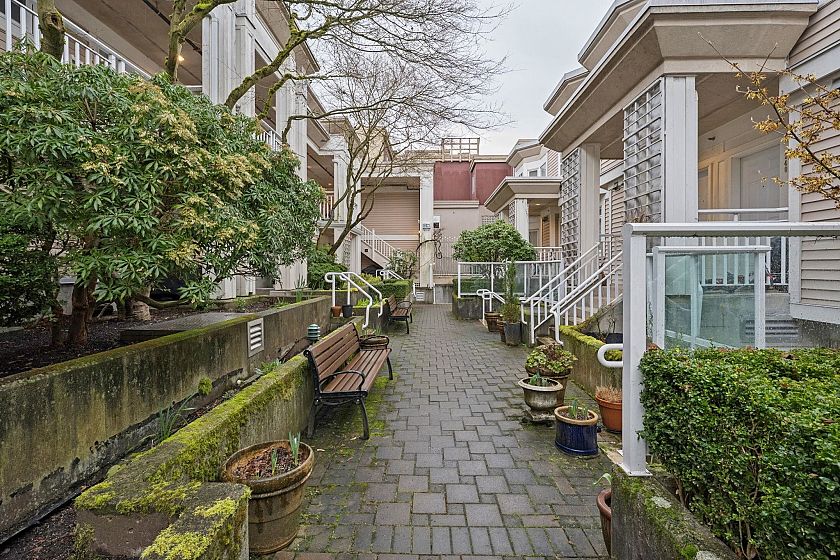 Kitsilano living at its finest. Trafalgar Mews is located in the shopping , entertainment hub. The building has been very well managed and maintained, rain screened and updated. The suite has been updated with new floors, vanity and lighting and plenty of style. The floor plan provides for open living and dining areas , spacious bedroom and sunny den for office. This one is a must see for the first time buyer or investor. Open Saturday March 14th 2-4