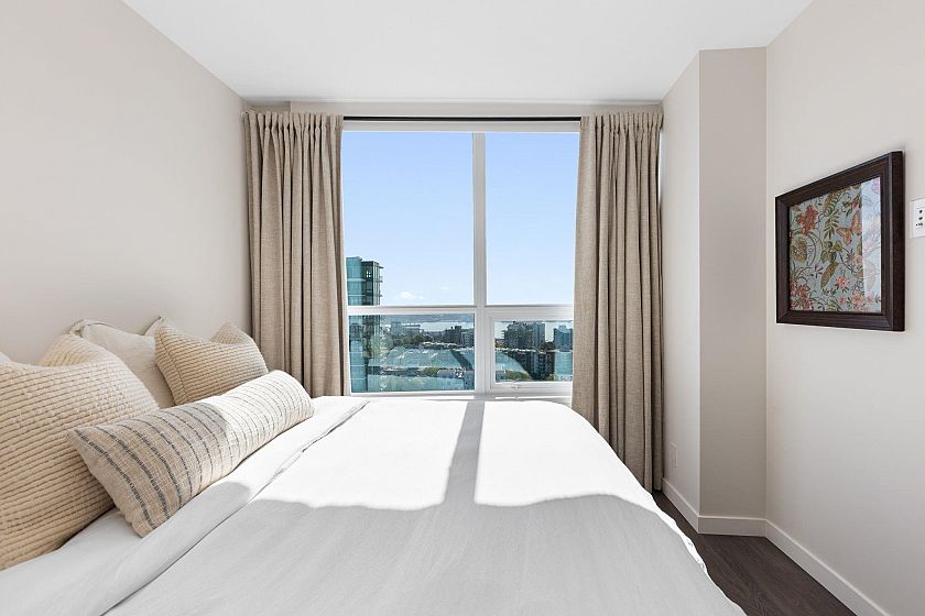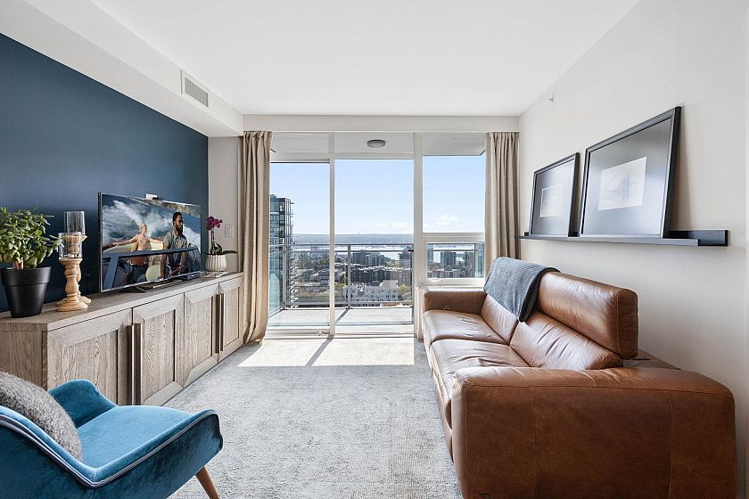 Spacious, luxurious 1 bed + Den in sought after Centreview with STUNNING South facing views of the city & ocean. The suite boasts high end appliances, hardwood floor, insuite laundry, A/C & a large patio to enjoy the views from. Nestled perfectly in Central Lonsdale where you can walk to everything: shopping, restaurants, recreation, transit & quick access to DT. The building features fantastic amenities: Concierge, outdoor pool, hot tub, gym, squash court, media room. Pets & Rentals allowed, 1 Parking 1 Storage locker included. Suites like this rarely become available, NOT TO BE MISSED!