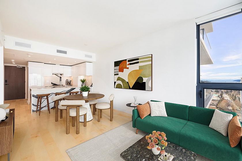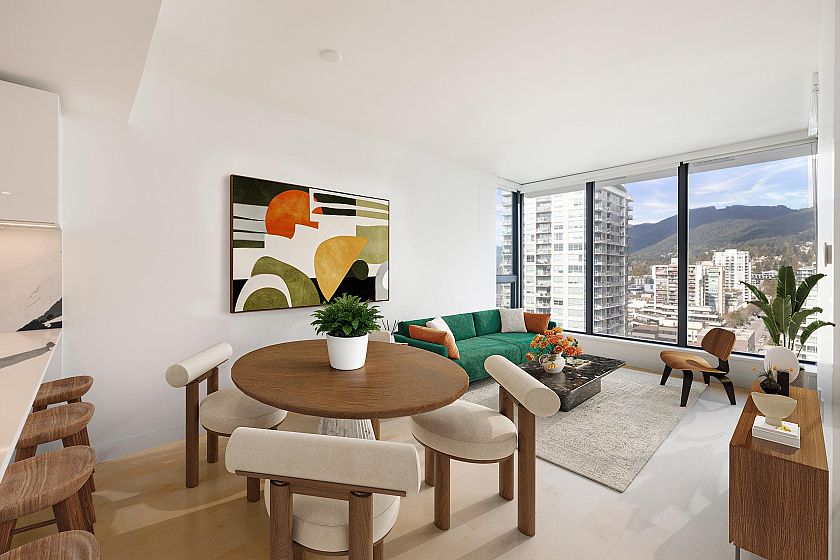 Millennium’s most refined build in the heart of Lonsdale. Designed for effortless living, where quality, thoughtful design & elevated finishes create true peace of mind. This beautifully upgraded 1 Bed + Den captures North Shore mountain, Lions Gate Bridge, ocean & sunset views through oversized floor-to-ceiling windows. Featuring Miele appliances, A/C w/ NEST climate control, spa-inspired bath w/ smart toilet, California closets & in-cabinet lighting. Enjoy year-round living w/ a covered balcony. EV parking & storage included. Resort-style amenities: heated pool, hot tub, steam, gym, rooftop lounge, 24 hr concierge, BBQ area & playground w/ panoramic city & ocean views. Steps to Whole Foods, dining, shopping & parks. New home warranty for worry free living. Easy to show come see yourself!