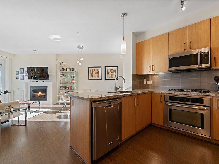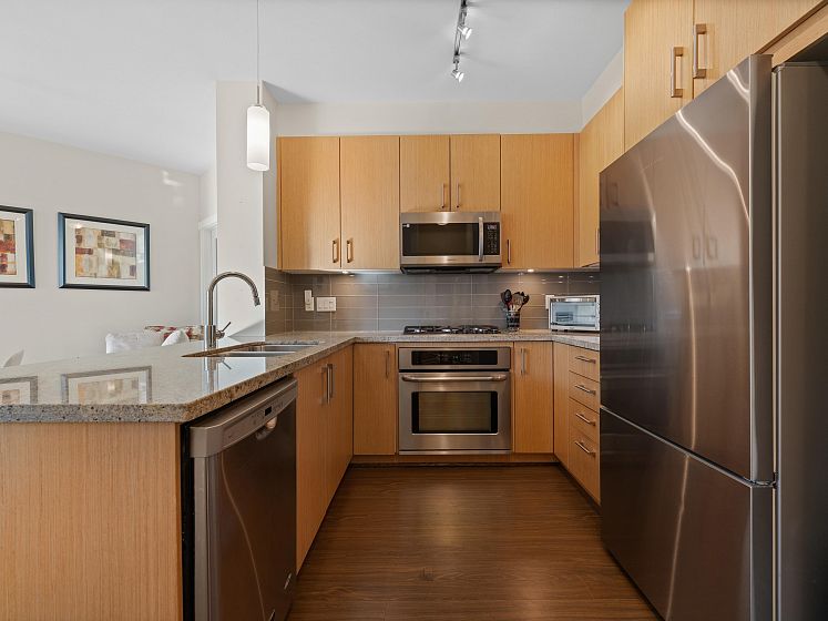 Welcome to this bright and spacious home in the sought-after ANDERSON WALK by POLYGON HOMES. Located on the 4th floor, this beautifully designed unit offers a fantastic open-concept floorplan facing the quiet COURTYARD, bringing in plenty of natural light. A standout feature is the SUPER LARGE DEN, perfect for a home office, guest space, or nursery. The kitchen includes SS appliances, a gas range, and granite countertops, flowing seamlessly into the living and dining areas. Enjoy a covered balcony and peaceful outlook. Amenities include a gym, guest suite, party room, and bike room. STEPS to shops, restaurants, parks, and transit in Central Lonsdale. Comes with 1 parking and 1 locker.